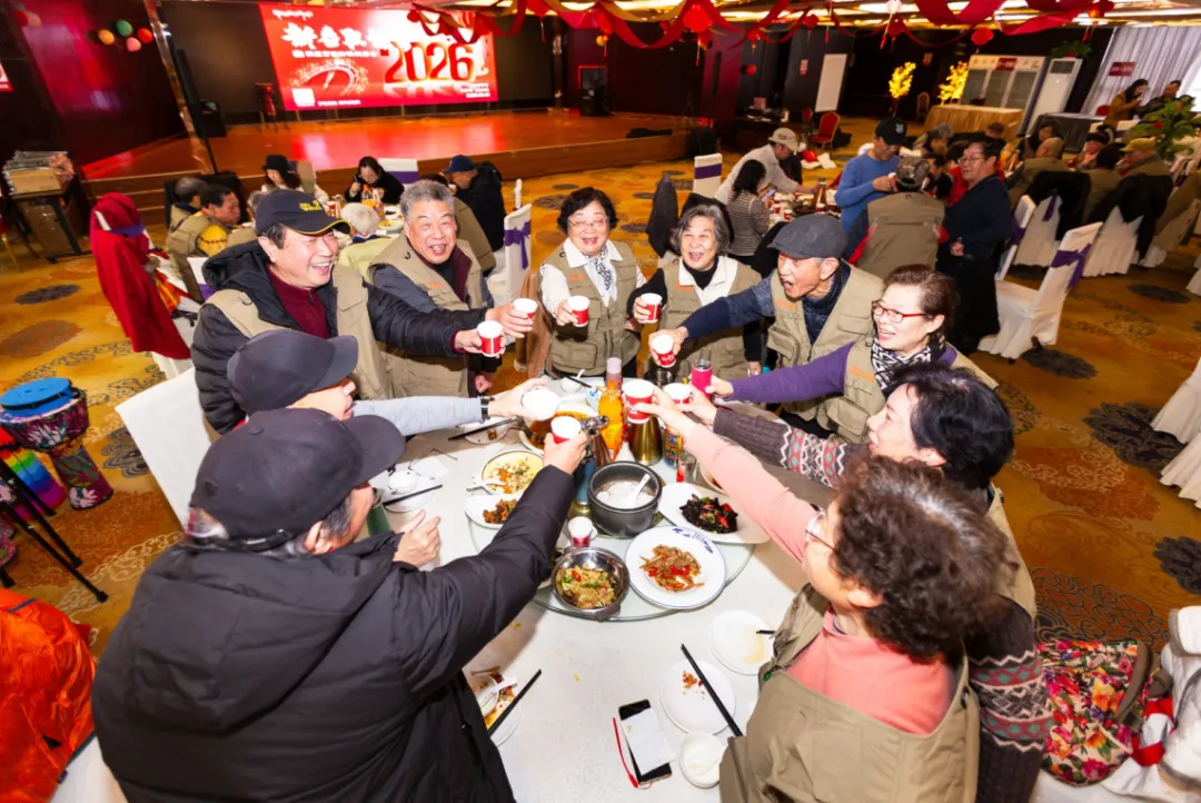 下午一点半,“新春联谊会”正式开始,会长张沅生带领副会长及秘书长向全体会员拜年,“新年快乐!马到成功!”的祝词在宽敞的大厅内回荡。