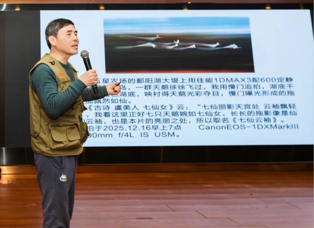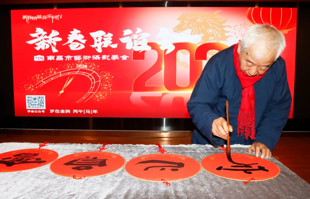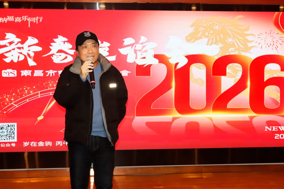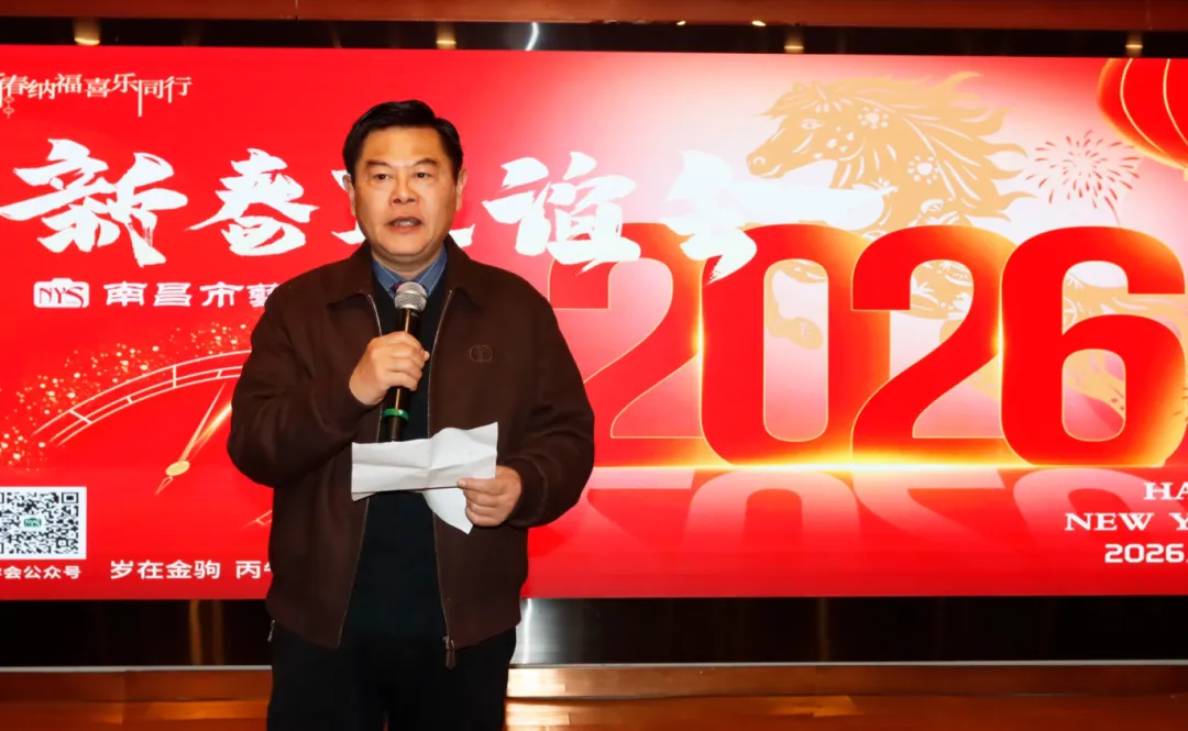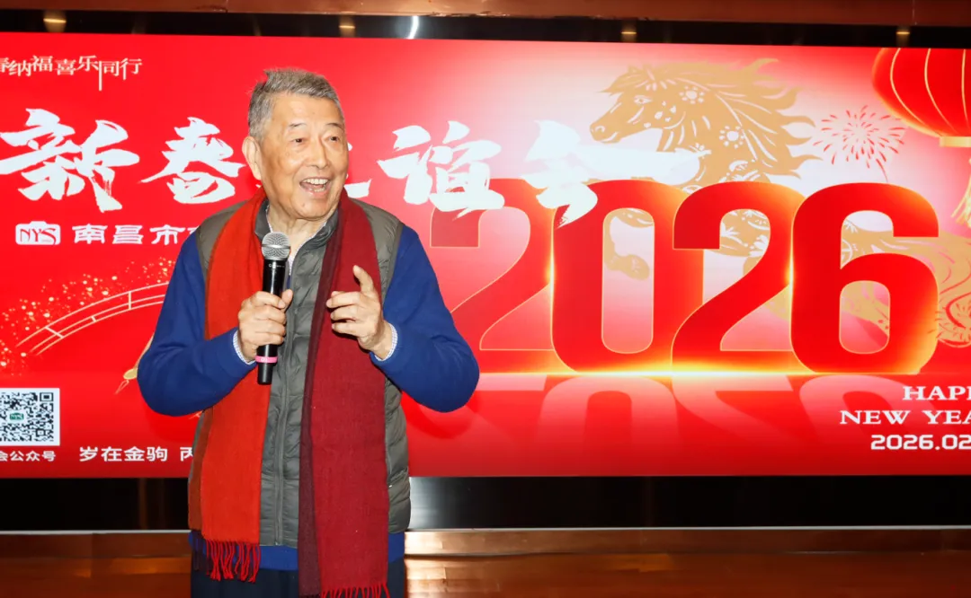 2月1日江西师大瑶湖校区白鹿会馆银杉厅内张灯结彩,巨大的LED屏上“南昌市艺术摄影学会·2026年新春联谊会”字样熠熠闪光。