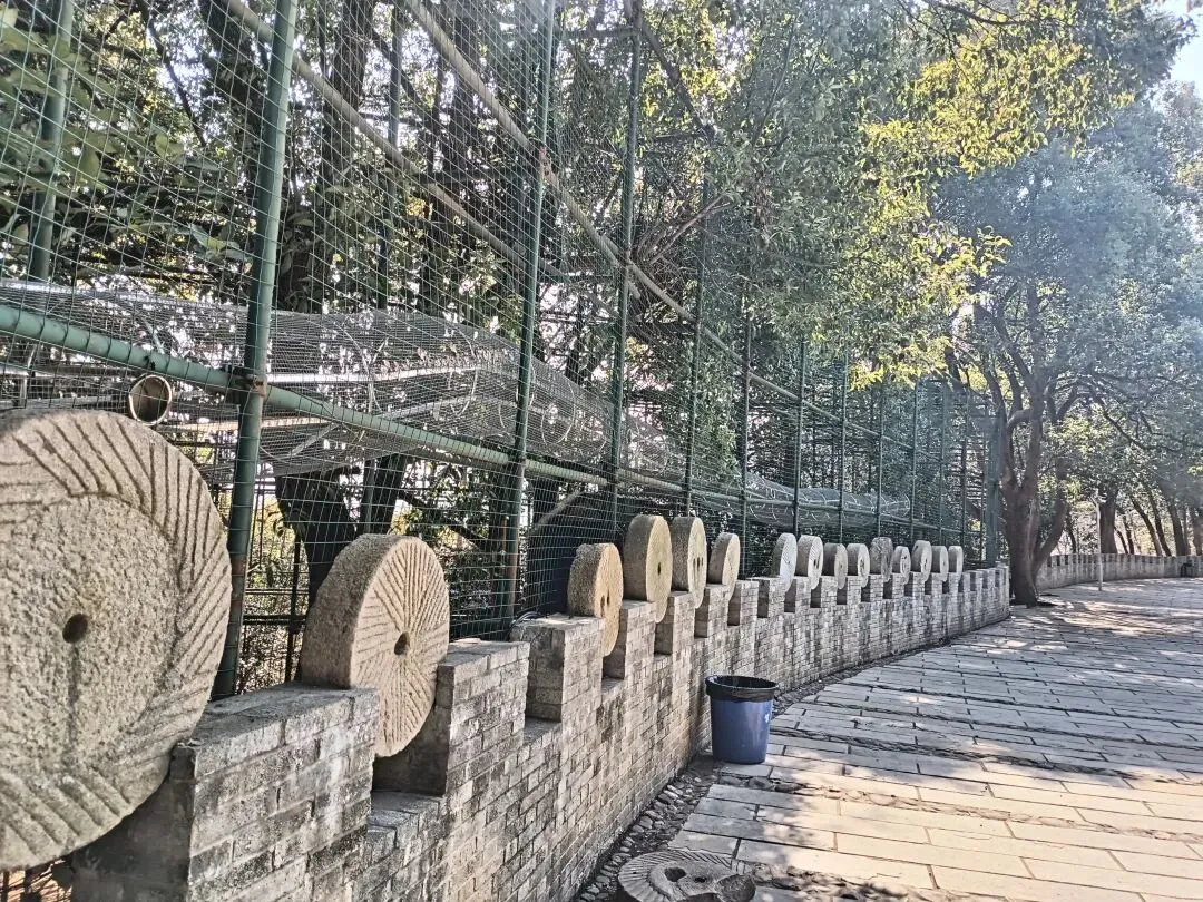 进了公园,我们向右上首拾级向山上攀爬。这是一个仿长城的建筑,每隔一段依山傍势建有烽火台,长城比较宽敞,目测在七、八米,台阶全部由青石板铺盖,两边的城垛由白沙砖建成,呈现着古朴的风格。长城高出山岭一丈有余,两边树木茂密,人工栽种了两排樟树,已高过墙垛。我们时不时看到四季青,一串串红粒垂挂在枝头。当然,山上最多的还是松树,大大小小的,笔笔直直挺立。
