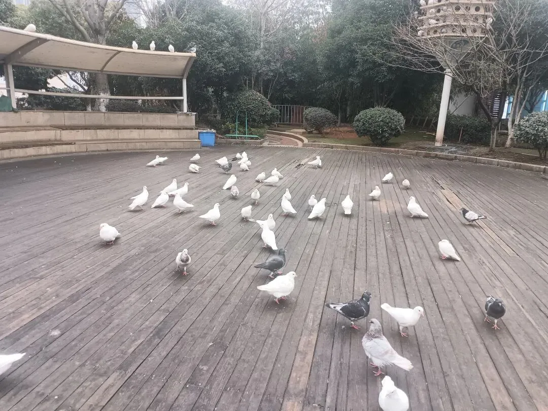 “怪石部落”右斜下方,修建有鸽子园、孔雀园等,各种风景树笑着和游客打招呼。儿子和外甥蹲在鸽园边喂鸽子,逗玩嬉戏,舍不得离开。人的天性大抵如此。