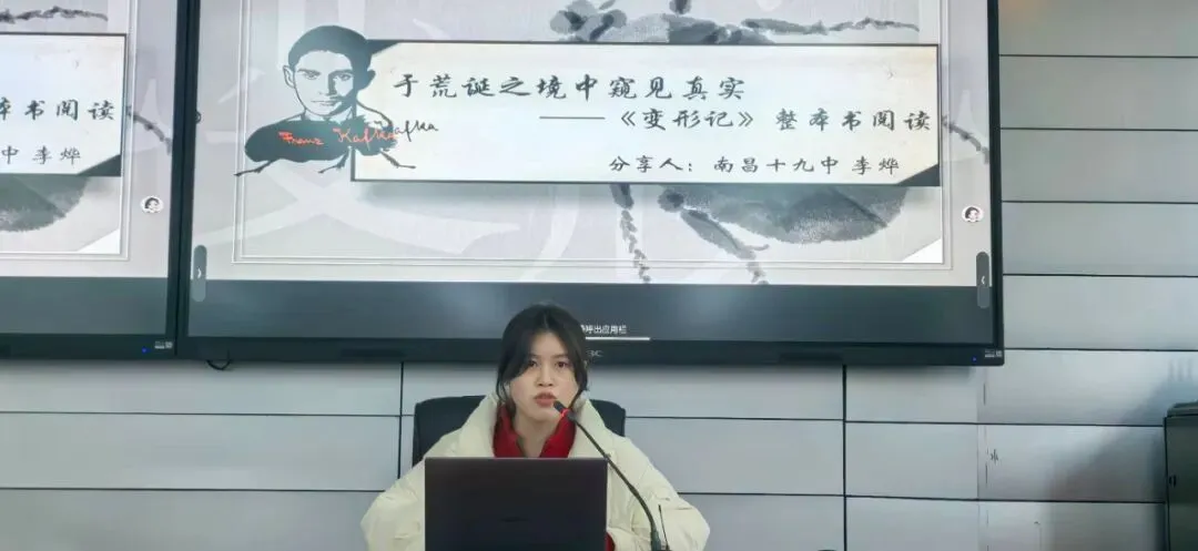 首先带来分享的是南昌十九中的李烨老师,她以“于荒诞之境中窥见真实”为题,带大家走进卡夫卡笔下的文学世界。