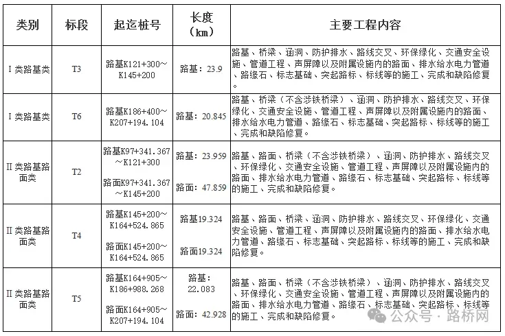 招标范围:本项目K97+341.367~K164+524.865、K164+905~K207+194.104桩号范围内的路基、桥梁、涵洞、防护排水、路线交叉、环保绿化、交通安全设施、管道工程、声屏障以及附属设施内的路面、排水给水电力管道、路缘石、标志基础、突起路标、标线等的施工、完成和缺陷修复。