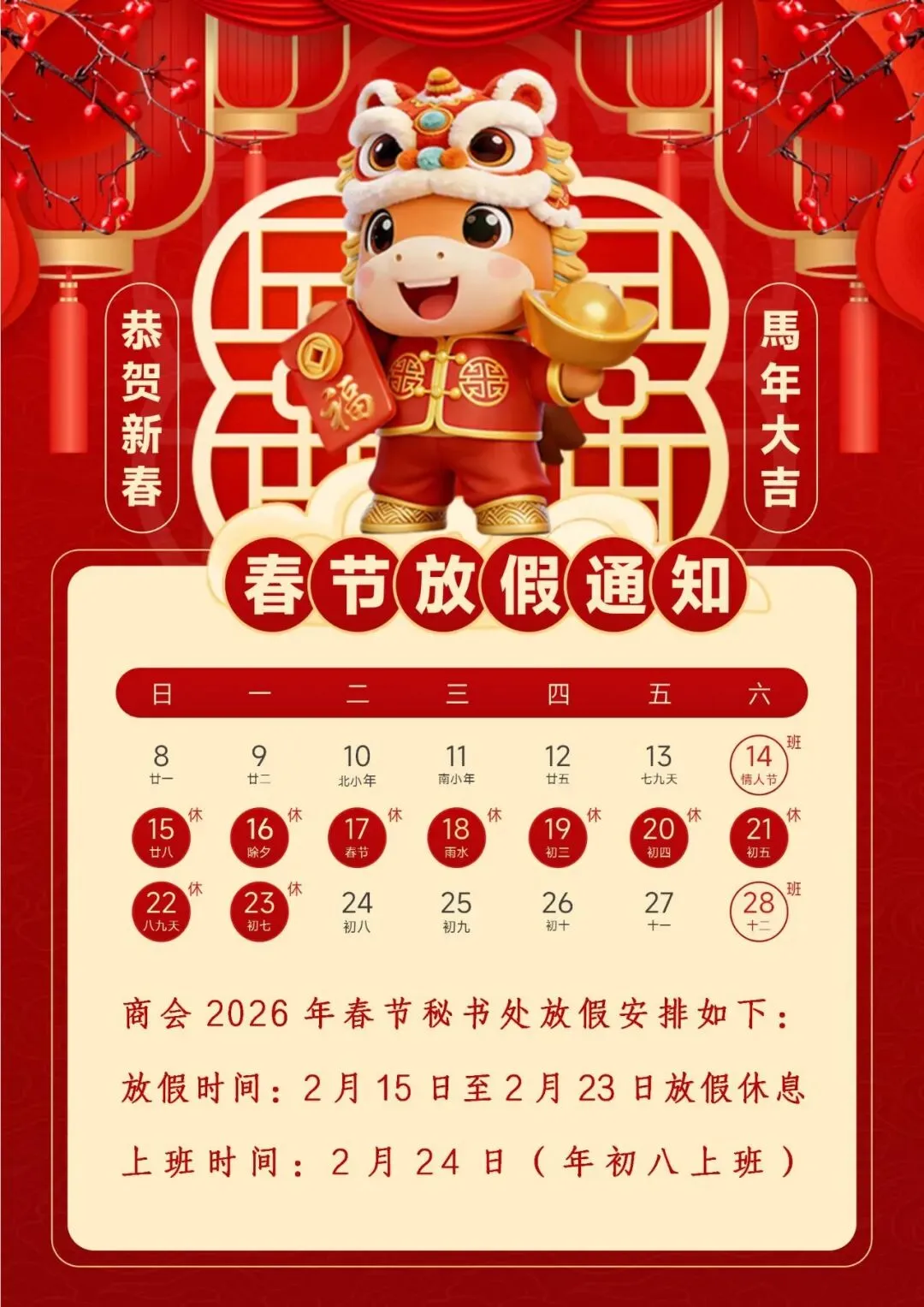 广东省江西南昌县商会春节放假通知