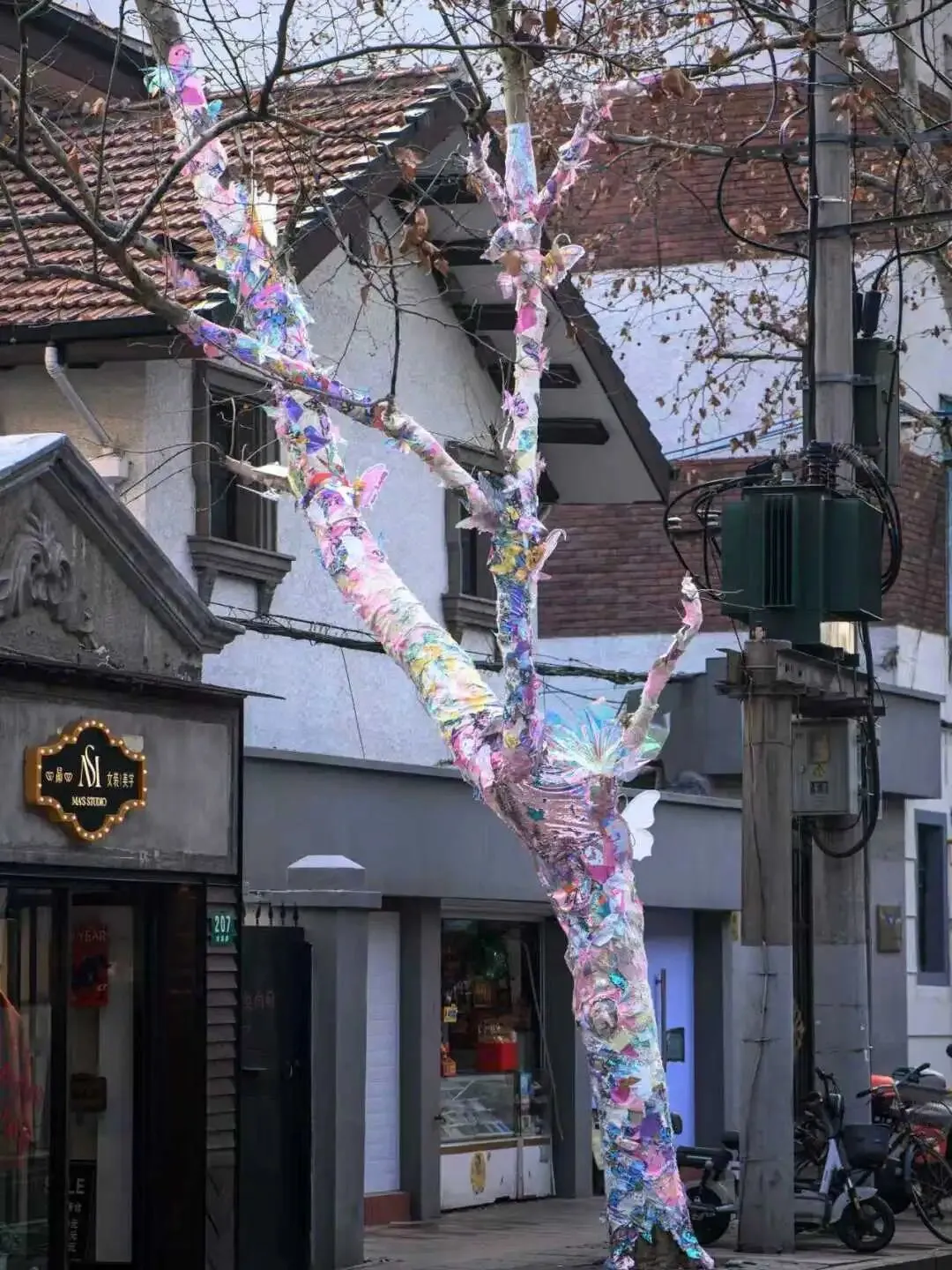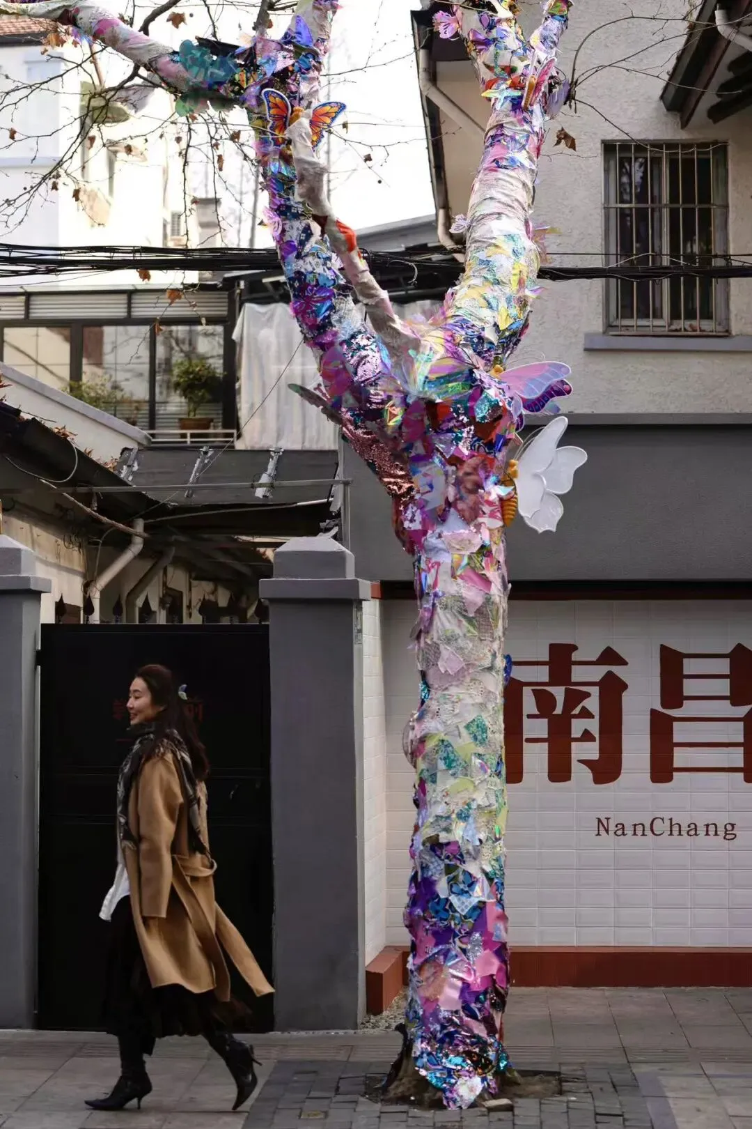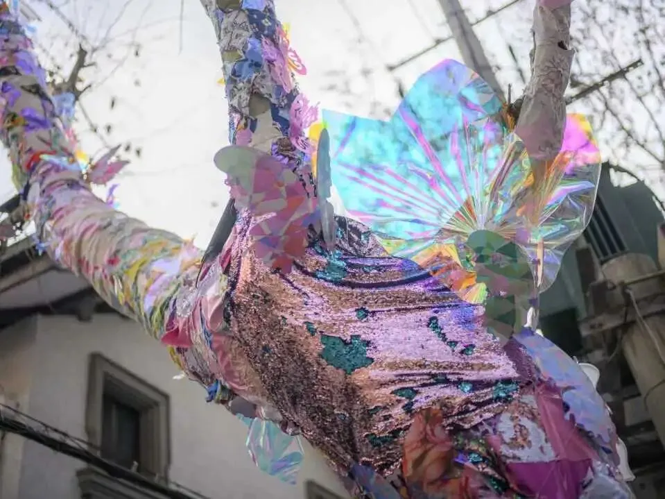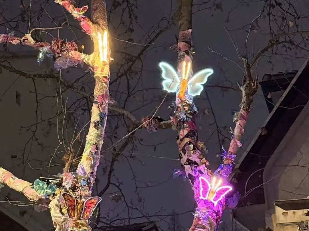 艺术家刘沛翎的蝴蝶装置,落于南昌路寻芳园及南昌路207号主树,以沉浸式公共艺术体验重构人与街区的联结,当蝶翼在梧桐枝桠间轻展、在口袋公园的绿意中流转,艺术不再是远观的展品,而是融入日常的风景,让南昌路成为有温度、有情感的城市生活场域。