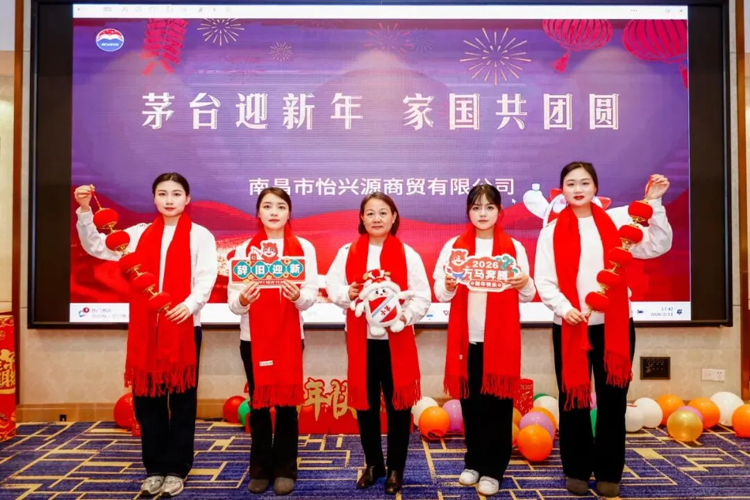 茅台飘香辞旧岁,家国同欢喜迎新。为凝聚行业伙伴情谊,共话新年美好愿景,2月11日一场以“茅台迎新年 家国共团圆”为主题的茅台主题年会温情启幕,江西省晓村实业有限公司、南昌市怡兴源商贸有限公司、江西省嘉珍实业有限公司等合作伙伴在南昌力高皇冠假日酒店齐聚一堂,在歌声与欢笑中共度美好时光。
