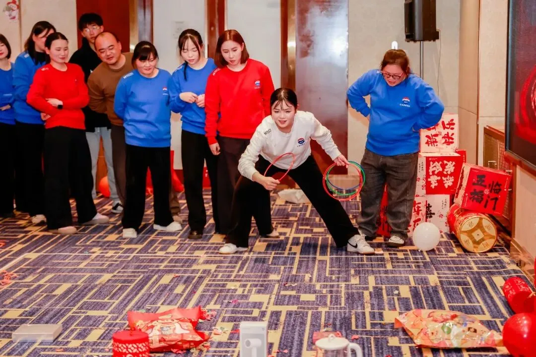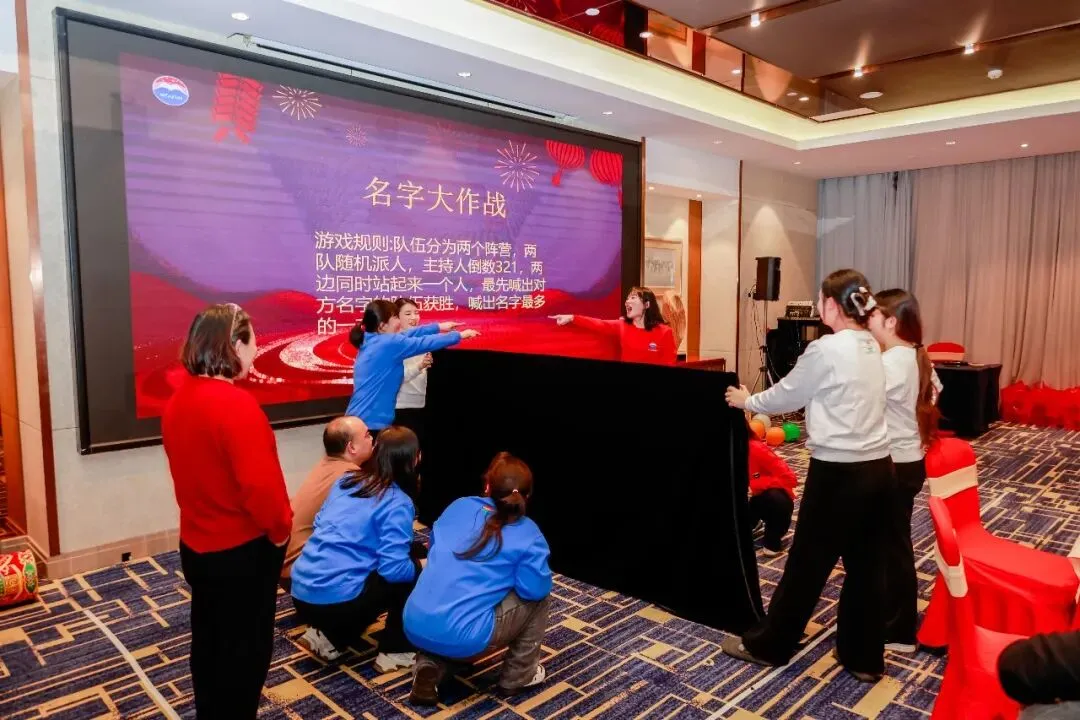 文艺表演过后,趣味互动游戏环节正式开启,蒙脸打人挑战、名字大作战、套圈、粘粘手盲盒挑战等趣味游戏接连登场,现场嘉宾踊跃参与,各显身手。蒙脸打人挑战考验听音辨位能力,紧张又刺激;名字大作战比拼反应与记忆,各阵营激烈角逐;套圈和粘粘手盲盒挑战充满童趣与惊喜,嘉宾们在游戏中收获奖品,更增进了彼此的情谊。随后的茅台知识问答环节,大家积极抢答、以答会友,在互动中加深了对茅台文化的了解,现场氛围热烈而温馨。