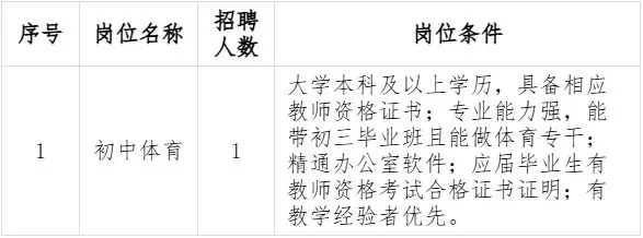 因工作需要,面向社会公开招聘派遣制教师1名,具体要求如下: