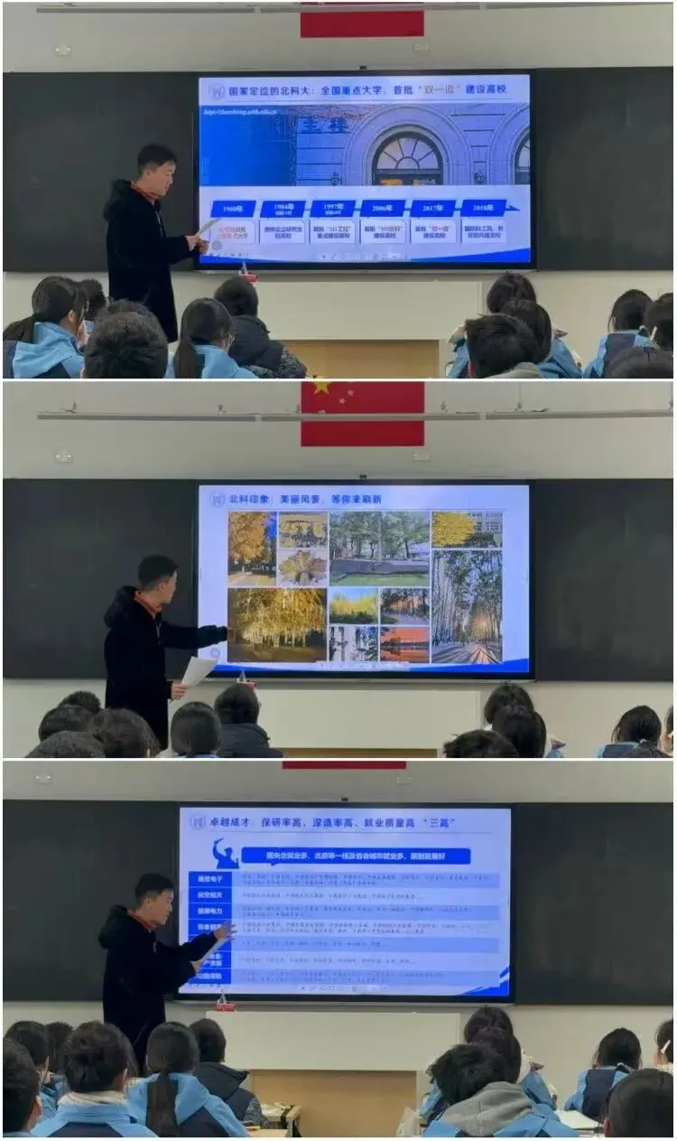 宣讲中,队员们围绕校园学习生活、学科特色、发展平台等多个方面,带领学弟学妹全面了解北科的成长路径与未来可能。通过真实经历与具体案例,学弟学妹们得以更直观地认识北科的学术氛围与科创环境,为专业选择与大学规划提供了清晰参考