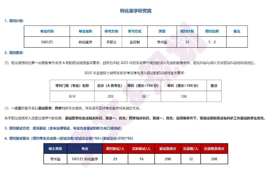 它系统梳理了转化医学研究院、公共卫生学院及多家临床医学院等逾10个医学相关单位的详细调剂数据,覆盖内、外、妇、儿等数十个热门专业方向,包含具体的调剂计划、门槛要求、复试方式及录取情况。