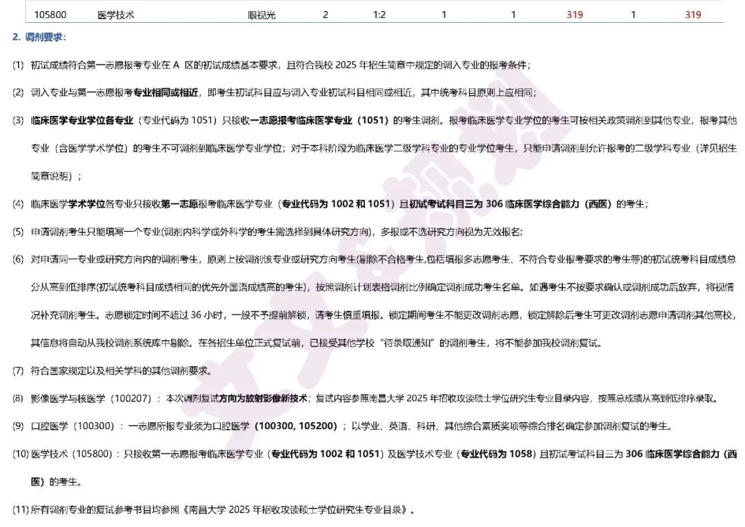 南昌大学2医学类各专业025考研调剂信息汇总