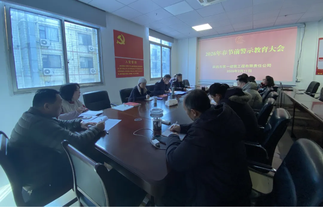 为深入贯彻落实全面从严治党要求,持续加固中央八项规定精神堤坝,切实加强春节期间党风廉政建设,教育引导广大党员干部职工廉洁过节、文明过节,2月11日下午,南昌市第一建筑工程有限责任公司召开2026年春节前警示教育大会。公司领导班子成员、中层管理人员参加会议。