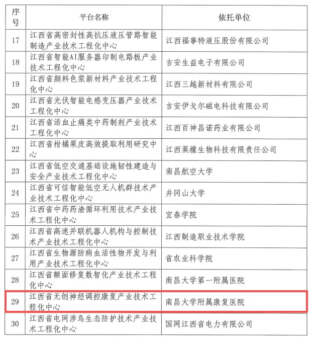 12月,江西省发展和改革委员会发布了《关于认定2025年江西省产业技术工程化中心的通知》。南昌大学附属康复医院申报的江西省无创神经调控康复产业技术工程化中心成功获批,该中心是全省在无创神经调控康复领域首个省级产业技术工程化中心。