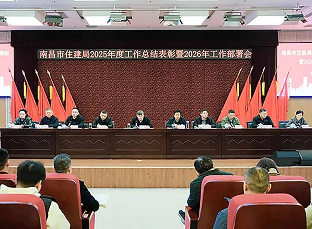 2026年2月12日,南昌市住房和城乡建设局召开2025年度工作总结表彰暨2026年工作部署会。会议全面总结回顾了2025年及“十四五”时期全市住房城乡建设工作成效,传达了市领导的批示精神,隆重表彰了年度先进集体和先进个人,科学研判了当前发展形势,系统谋划了“十五五”时期发展思路,并对2026年重点工作进行了动员部署。局党组书记、局长李勇出席会议并讲话。局党组成员、副局长袁成主持会议。