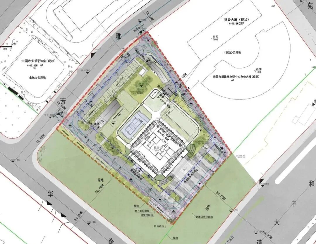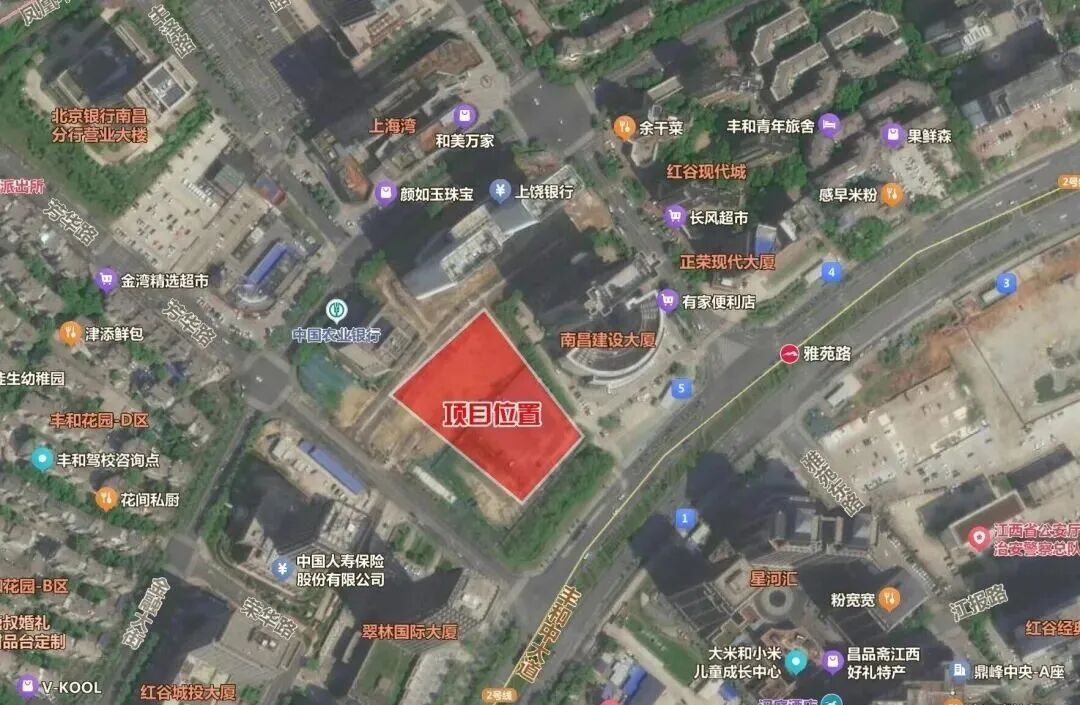 从区位看,项目位于芳华路以东、丰和中大道以北、芳雅路以南,紧邻雅苑路地铁站。项目规划建设用地面积10401.93平方米,总建筑面积34934.13平方米,其中地上建筑面积22936.99平方米,地下建筑面积11997.14平方米,项目规划机动车停车位267个,地上40个,地下227个,非机动停车位926平方米。该项目建设单位为中国农业银行股份有限公司南昌分行。
