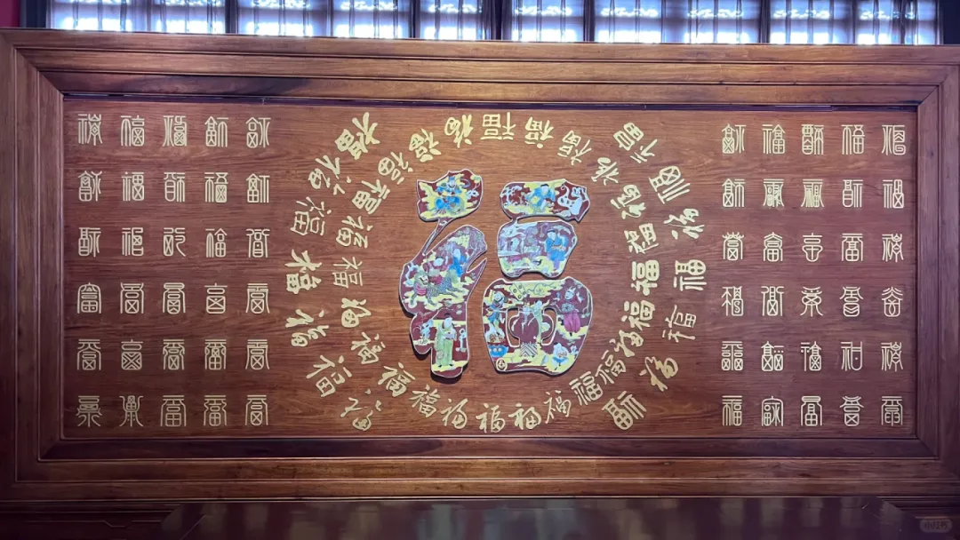 南侧“百福厅”,还摆放的是一座“百福屏”,上面整整一百个不同字体的“福”字,采用缅甸花梨木雕刻,找到你最喜欢的那一个,就是你的马年本福!
