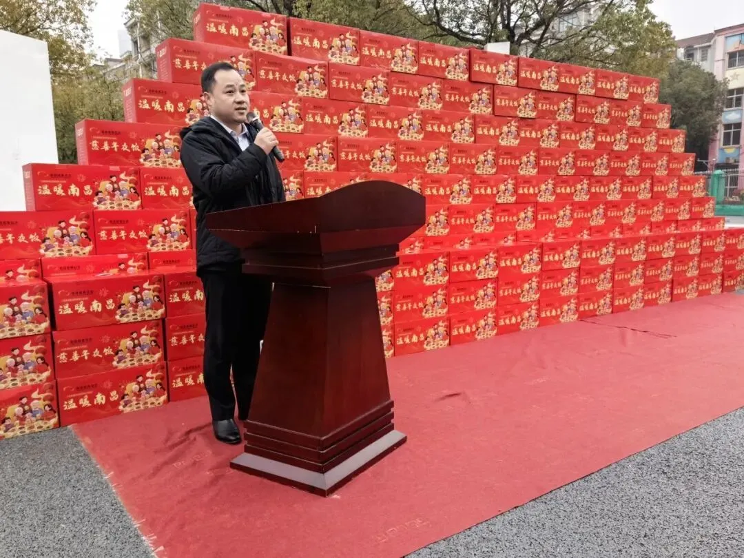吴伟柱会长热情为困难群众赠送“慈善年夜饭”。吕娄副会长主持并致辞。一份份“慈善年夜饭”,不仅承载着爱心,更有着严格的餐品与质量标准,还藏着贴合南昌人味蕾的巧思。为让困难群众吃得放心、吃得舒心。本次“慈善年夜饭”均按照“七菜一主食”的经典标准配置,鸡、鸭、鱼、肉样样齐全,让大家足不出户的在餐桌上尝到家的味道、年的味道。