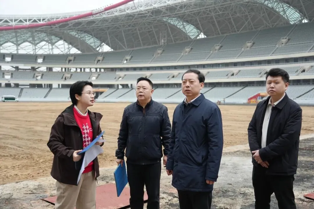 调研现场,万义辉先后查看主体育场、竞赛功能区及配套设施等重点改造区域,认真听取项目推进情况汇报,细致询问跑道翻新、草坪更换、照明系统升级、功能用房优化、无障碍设施完善等核心工程进度,现场协调解决施工过程中存在的困难与问题。