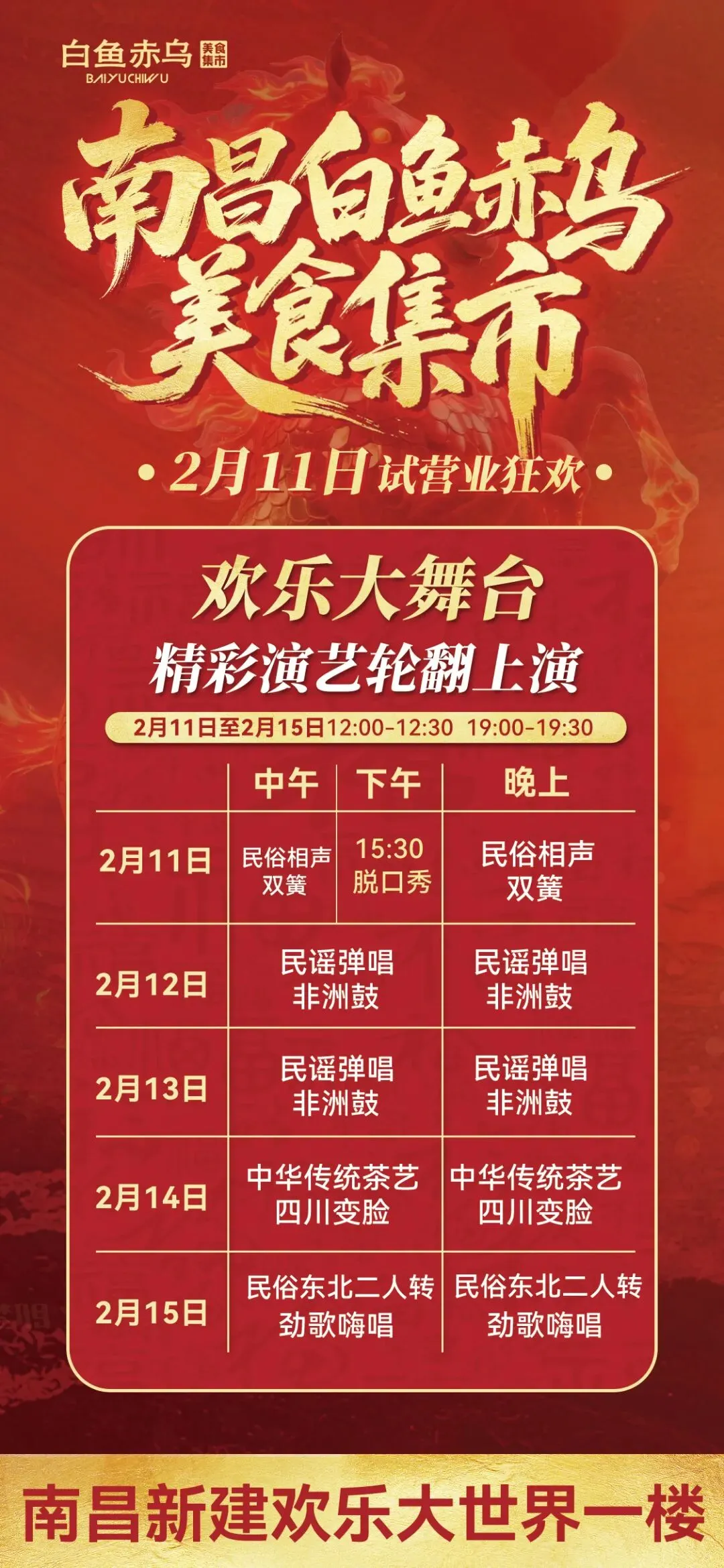 春风送暖启新程,美味相逢正当时。2月11日,南昌白鱼赤乌美食集市试营业仪式在南昌新建欢乐大世界1楼中庭举行,众多领导、嘉宾与市民朋友们齐聚现场,共同见证这一美好时刻。