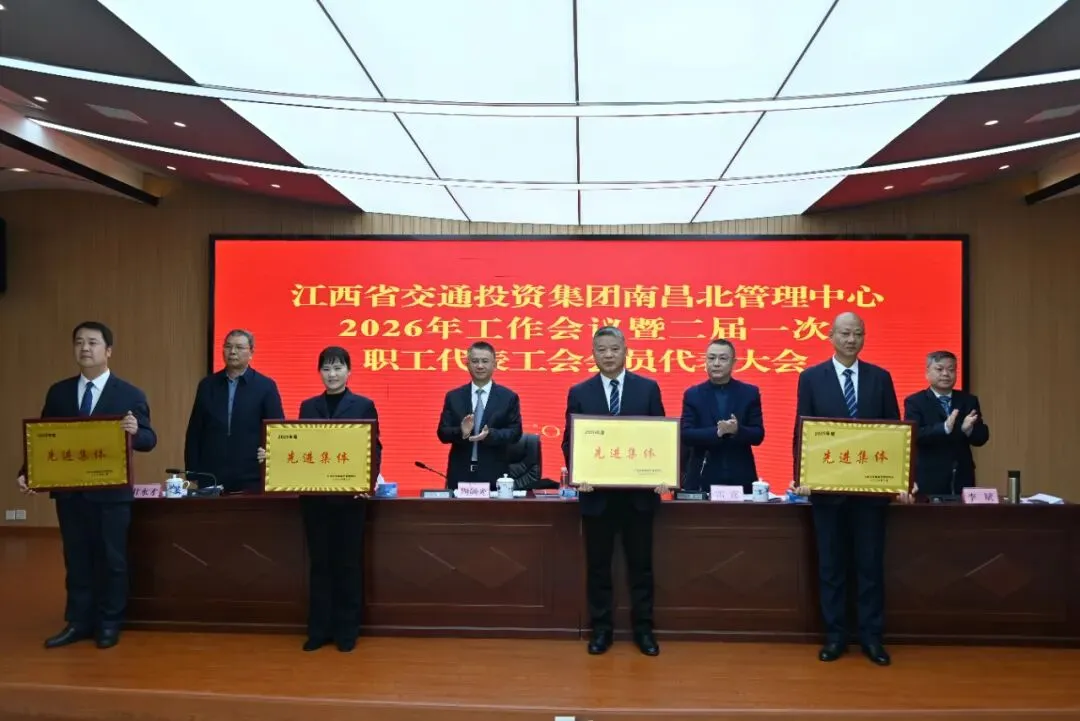 2月12日,南昌北管理中心召开2026年工作会议暨二届一次职工代表、工会会员代表大会,中心党委委员、总经理周剑光作工作报告,党委副书记、纪委书记雷霆作工会工作报告并主持会议,党委委员、副总经理甘水才作安全生产工作报告,总经理助理李斌宣读表扬通报。
