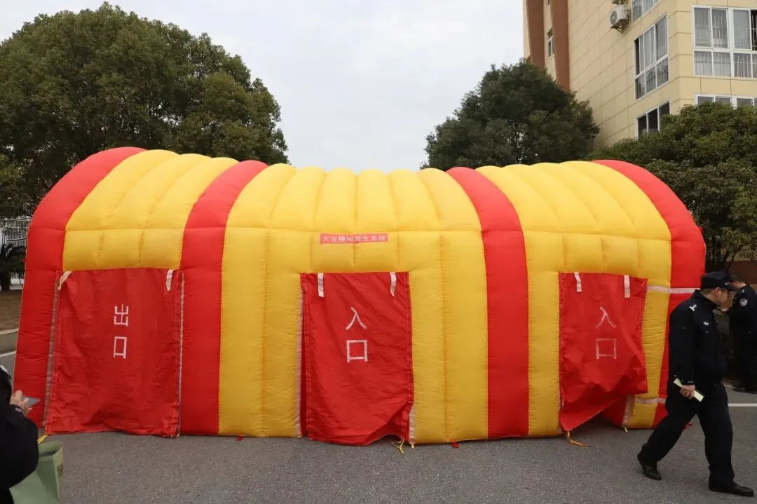 烟雾逃生体验屋是一个充气房,充气后大概十几平米,内部设置充气隔板形成“迷宫”,人们排队穿过令人窒息的浓烟。从而体验火灾真实环境。