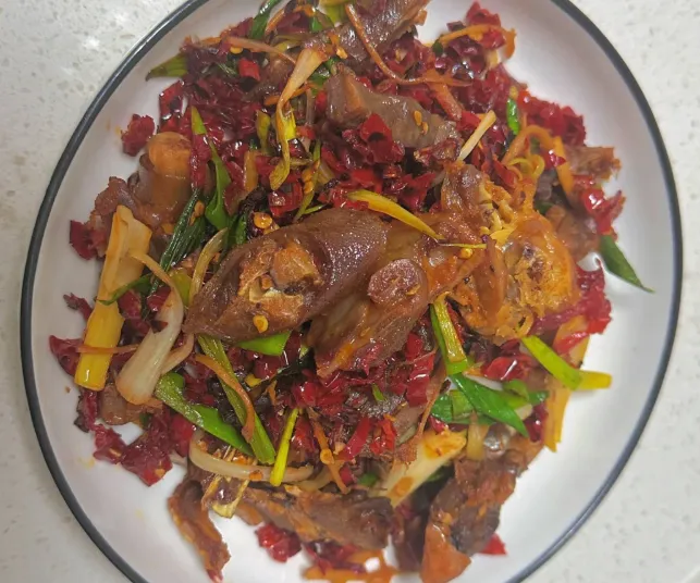 这里必须提一道菜:遂川板鸭。它不是那种干巴巴的腊肉,而是时间的艺术。选用当地的“红毛鸭”,抹上盐,用竹板撑开,在冬日的暖阳和冷风里慢慢风干。做法很简单,洗净了切块,上锅一蒸,或者加点辣椒爆炒。皮薄肉嫩,骨头里都透着香。咬一口,肉质紧实却不塞牙,那股子陈年的咸香味在嘴里炸开,不需要多余的佐料,光是这鸭肉原本的鲜味,就能让你多吃两碗饭。