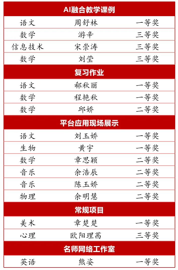 近日,南昌市教育局公布2025年南昌市AI赋能教育应用成果展示活动获奖名单。南昌二中教师凭借前瞻的数字教学视野、扎实的AI应用能力与深耕教改的创新精神,在此次活动中斩获佳绩,其中语文组教师获一等奖三项,各参赛板块全面开花。