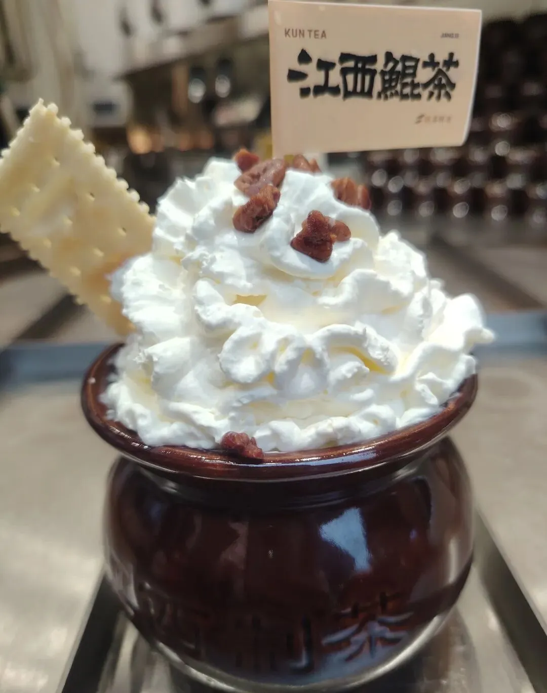 奶油雪顶鲲茶,到江西必喝🍵。罐子带回家可用来煲汤或自制奶茶。