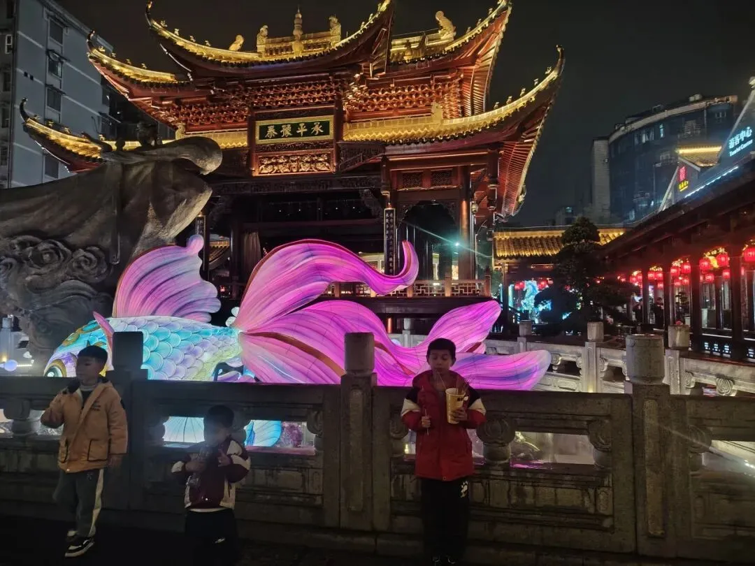 万寿宫对面的灯会,即使夜深依旧灯火通明。