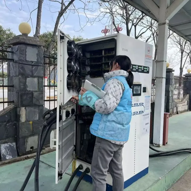 排查中,场站安全技术员化身“安全哨兵”,对各自所辖充电场站开展拉网式、全方位隐患排查。重点检查充电桩机体完好度、充电枪接口密封性、线路绝缘状态、接地连续性等关键指标,详细记录设备运行参数与检查结果,核查配电系统、应急电源、消防设施配备有效性及监控、夜间照明运行情况,对线路接触不良、指示灯故障等小问题即查即修,对无法现场修复的设备统筹调配资源更换调试,不放过任何细微隐患,确保所有充电设备以健康状态投入春节保障。