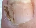 甲沟处出现黄白色脓点,或自行破溃流脓;