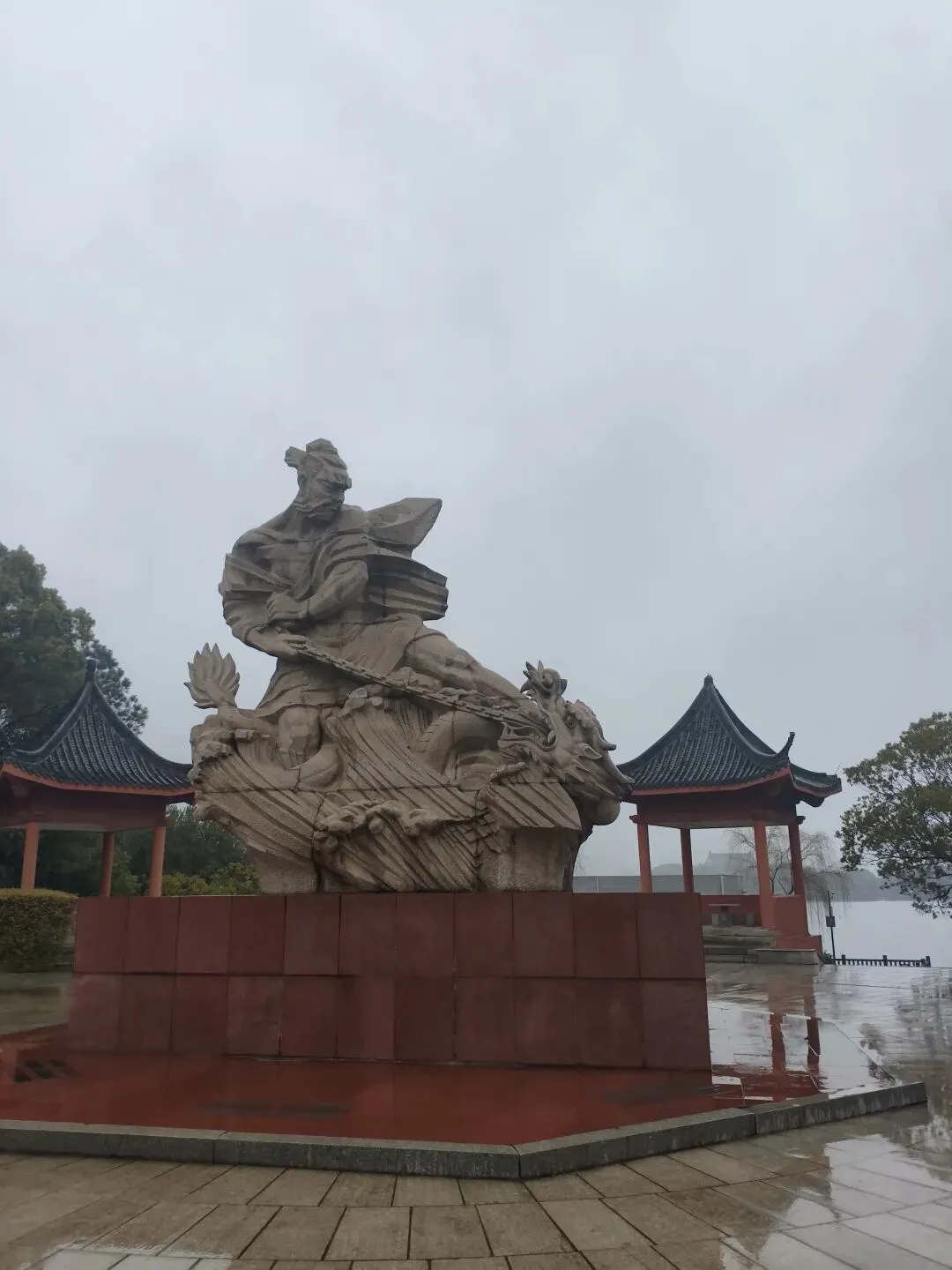 我们两人围着玛雅后面转了一圈,问了人说后面有个豫章书院,然后看到象湖风景区,走到了风景很美的2025年才建成的豫章书院,从外面看,书院是伸进象湖的建筑,让我想起青岛的栈桥。