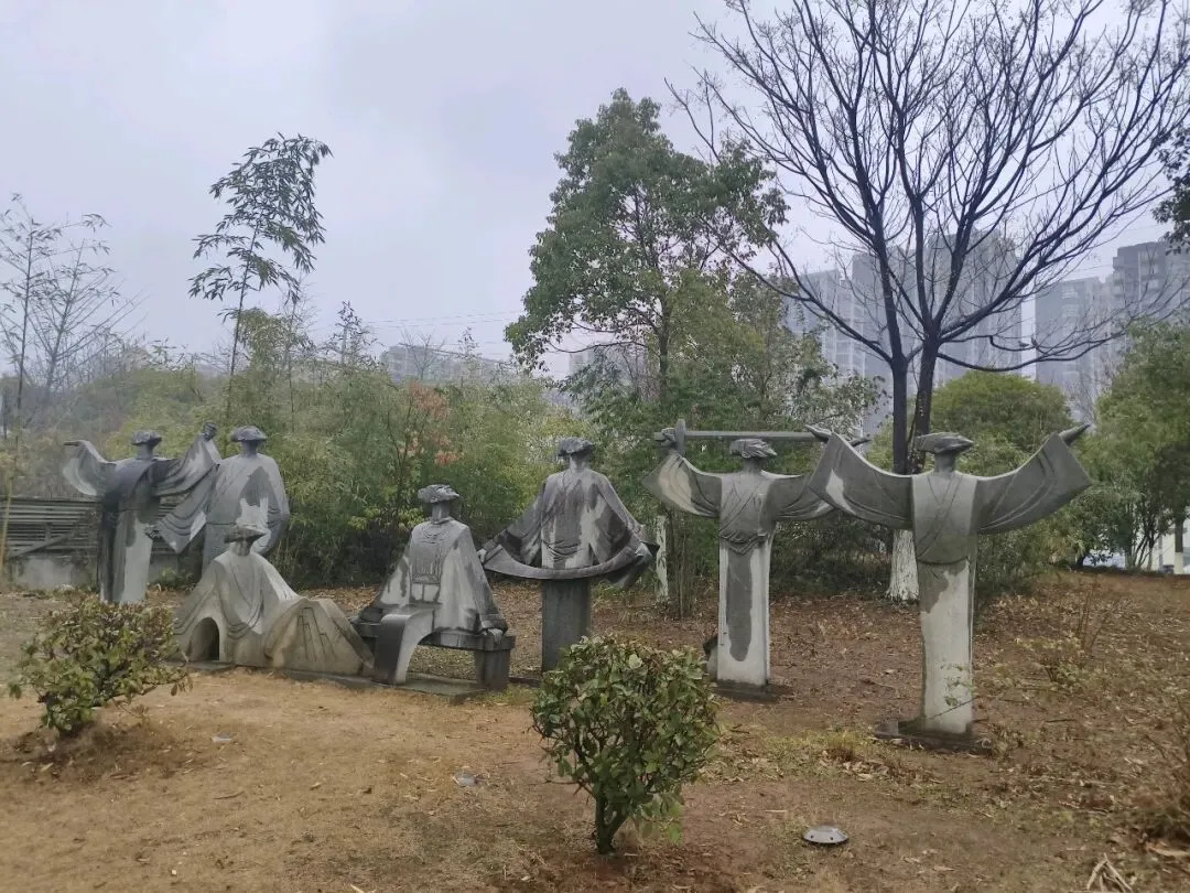 这里好大,也叫万寿宫,我们猜想,这是之前去的万寿宫文化街区的头,因为万寿文化街区里面有个锁龙井,锁住的恶龙的尾巴,这里是头,看下面的雕塑