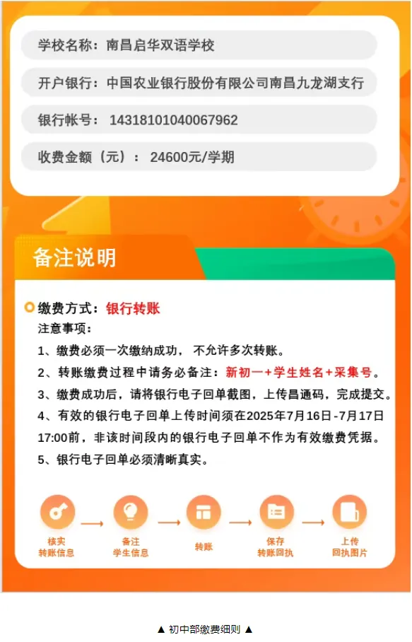 2025南昌启华双语学校初中新生缴费公告及报到安排