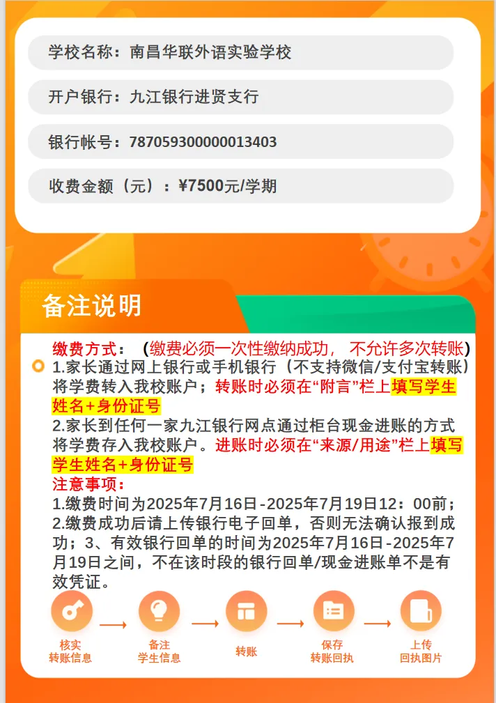 南昌华联外语实验学校2025级初一年级新生缴费录取流程