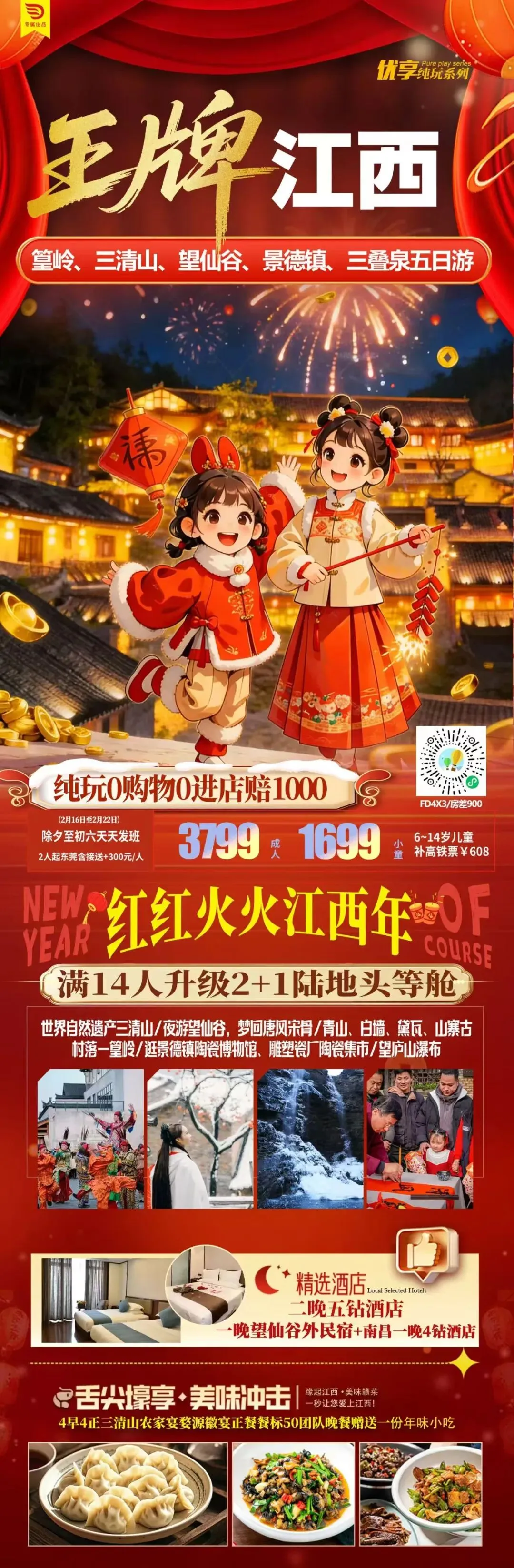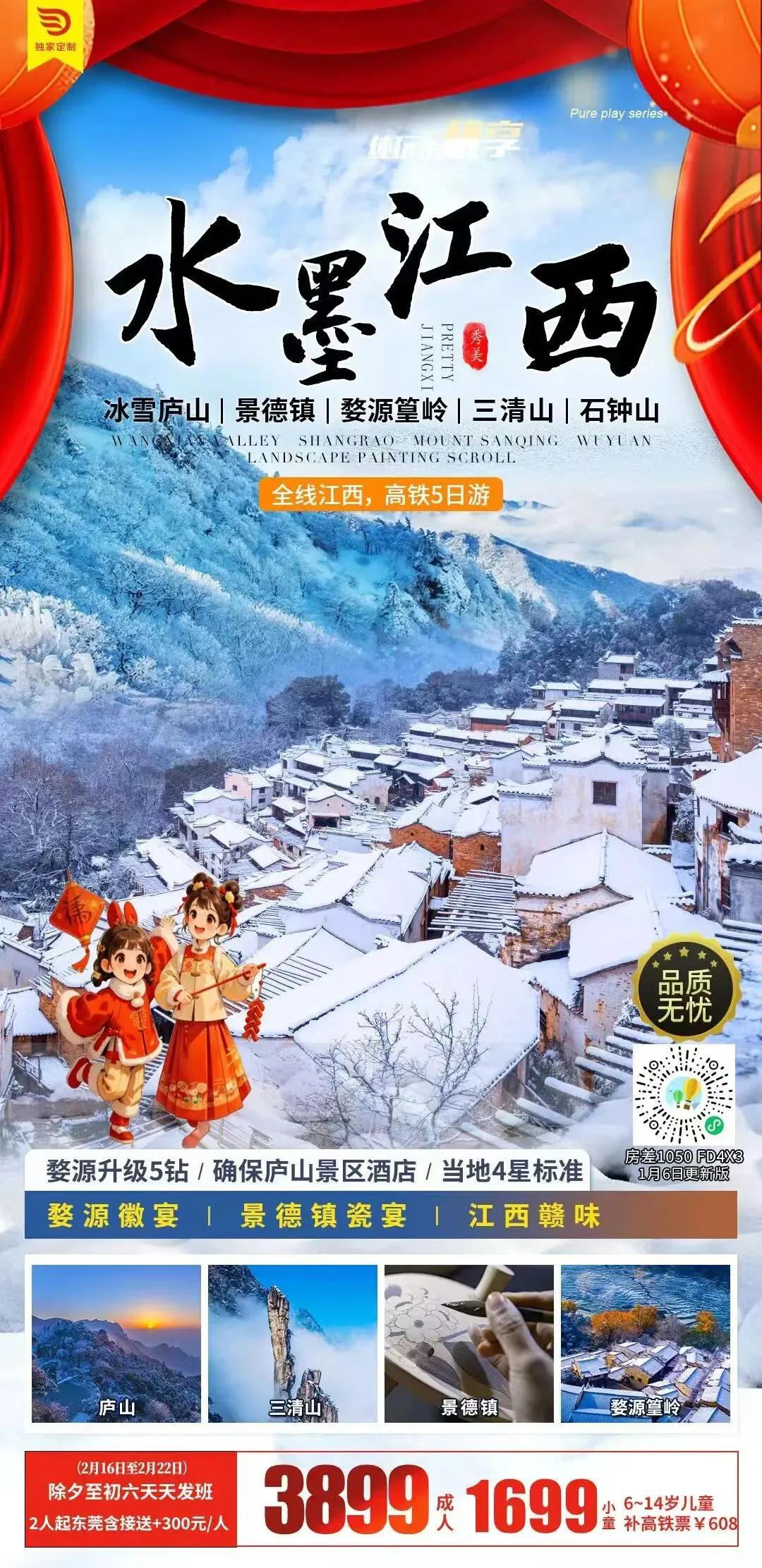 >春节深圳出发江西跟团旅游汇总:南昌、庐山、景德镇、望仙谷、三清山