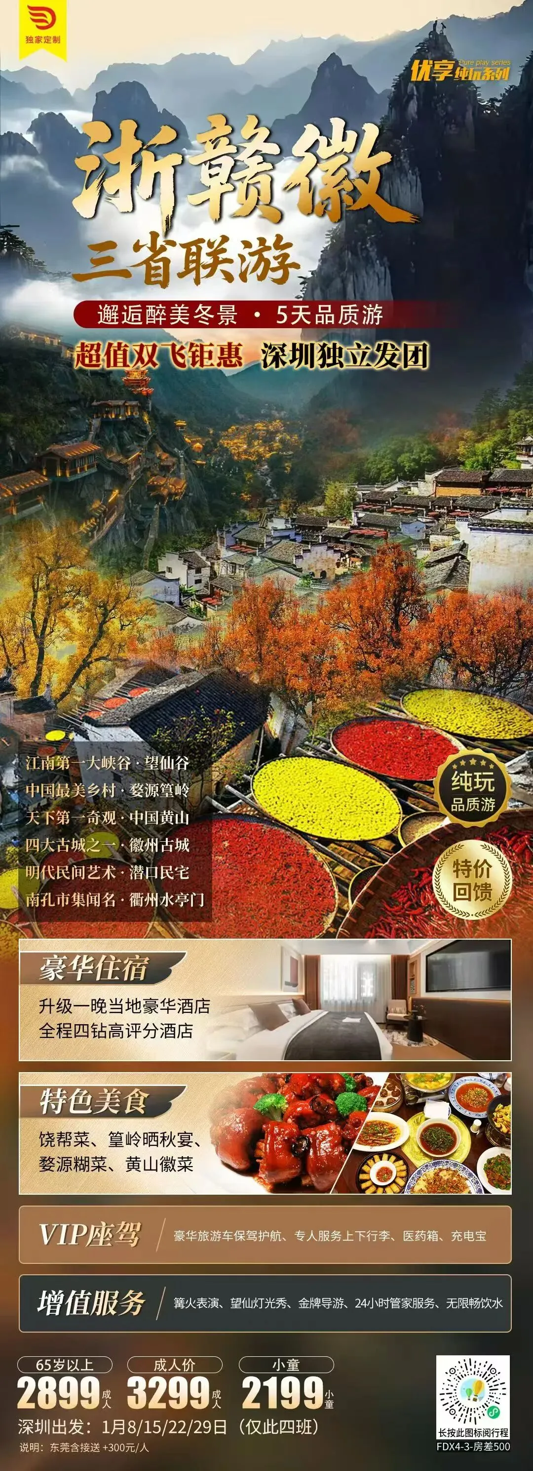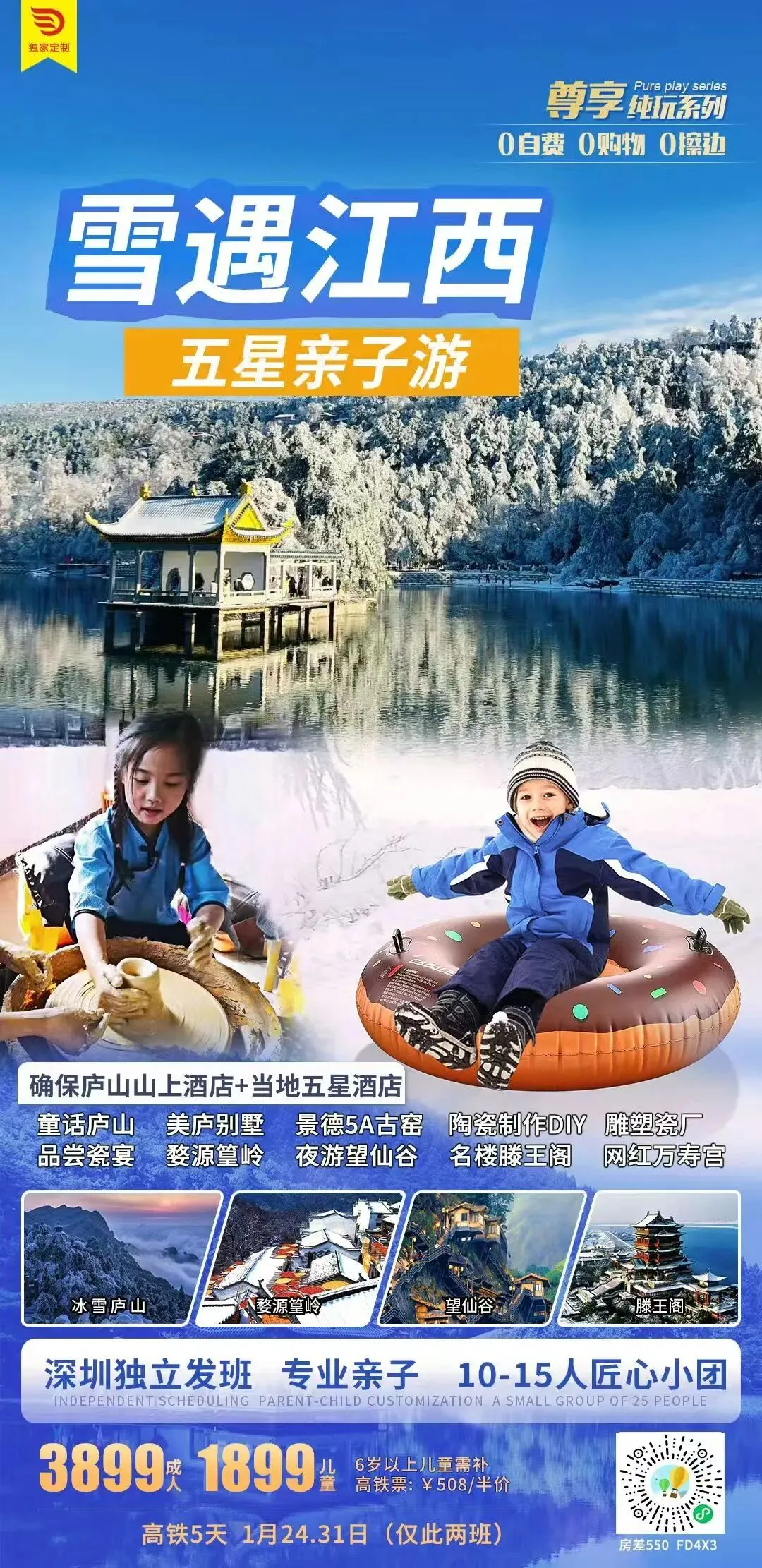 春节深圳出发江西跟团旅游汇总:南昌、庐山、景德镇、望仙谷、三清山