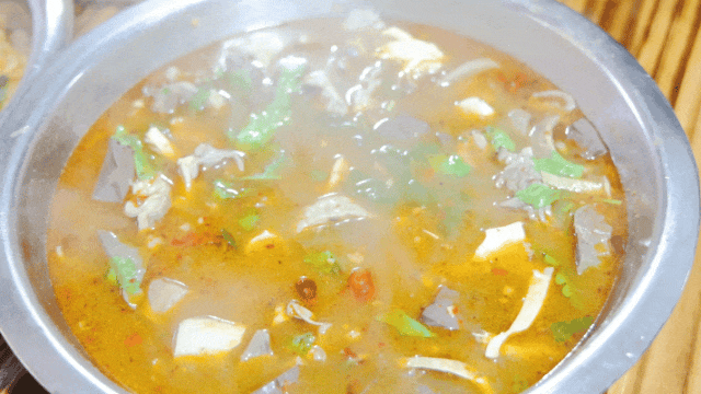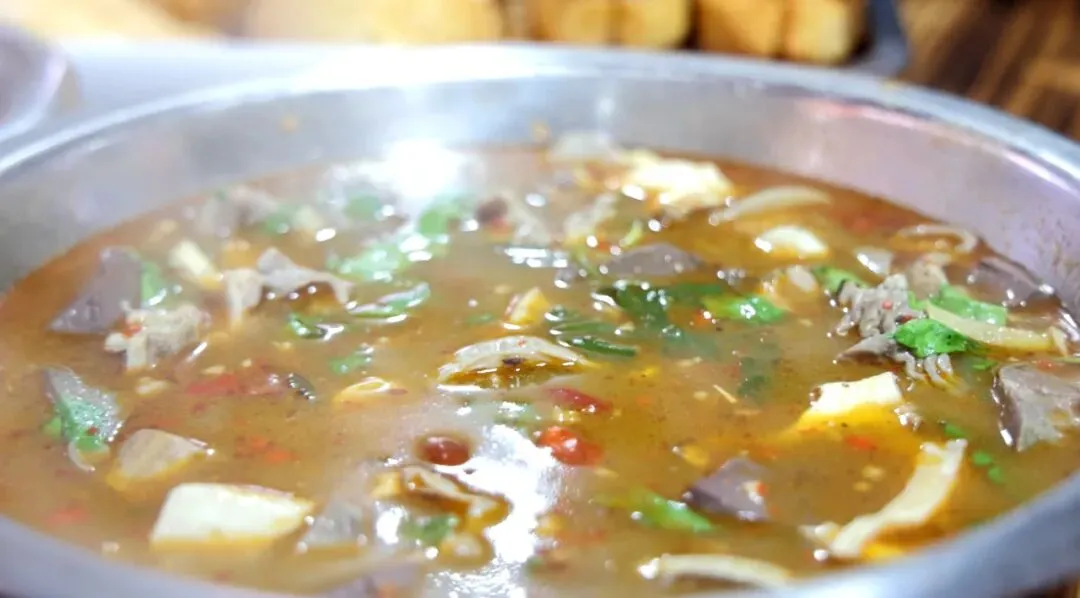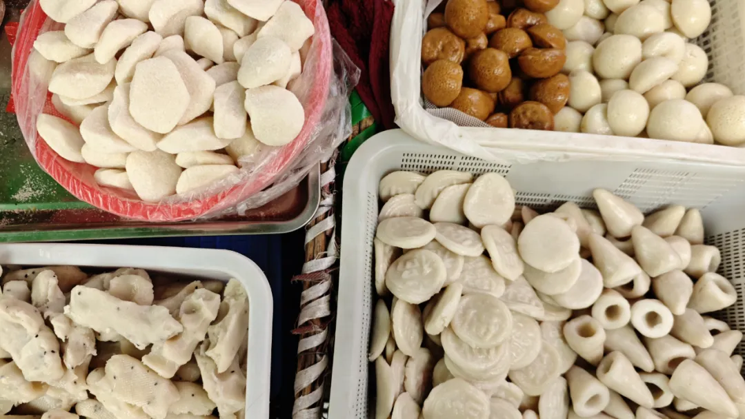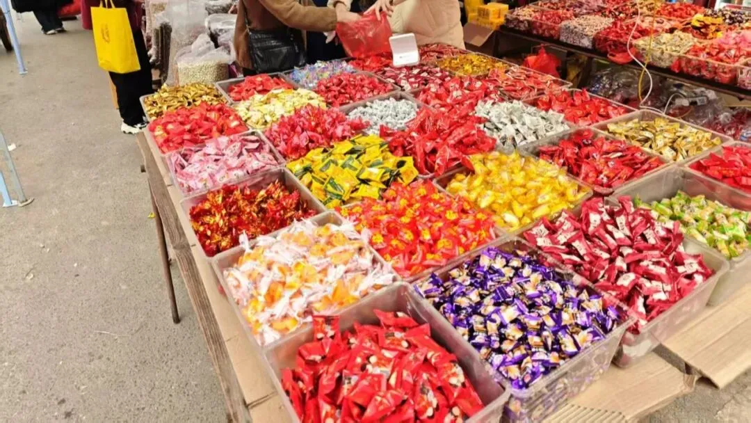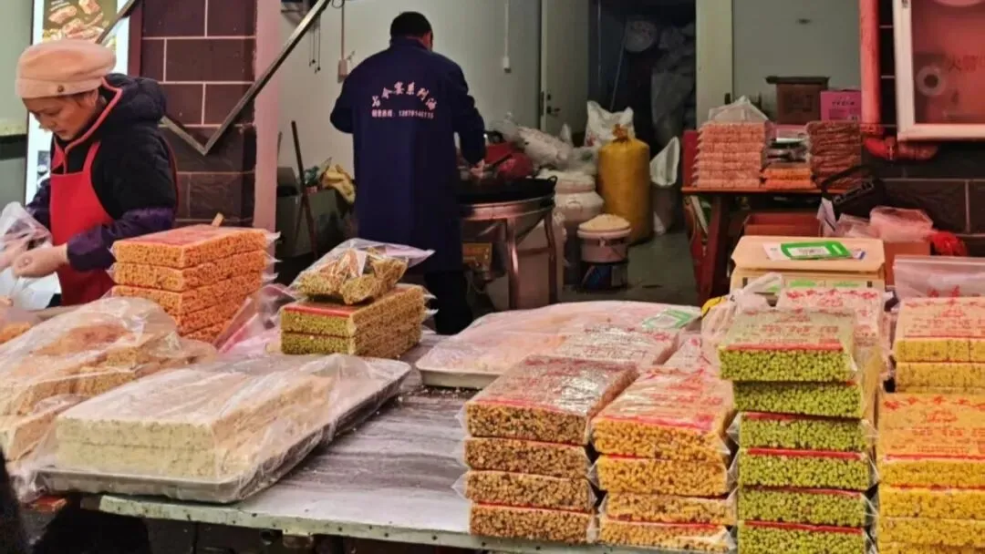 用碾子把刚出锅的冻米糖一次次的滚过去,