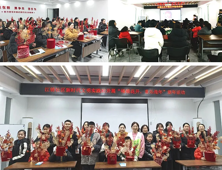 2月10日,江锦社区新时代文明实践站开展“福桶花开迎新春 平安护航过大年” 主题活动,居民踊跃参与,在温馨氛围中品年味、学安全、话家常。活动中,志愿者围绕交通安全、反诈防骗进行宣传,用通俗语言和真实案例讲解安全知识,守护居民财产安全;随后的福桶 DIY 环节里,大家在志愿者指导下制作福桶,邻里互助、气氛热烈,在动手创作中感受浓浓年味与社区温情。
