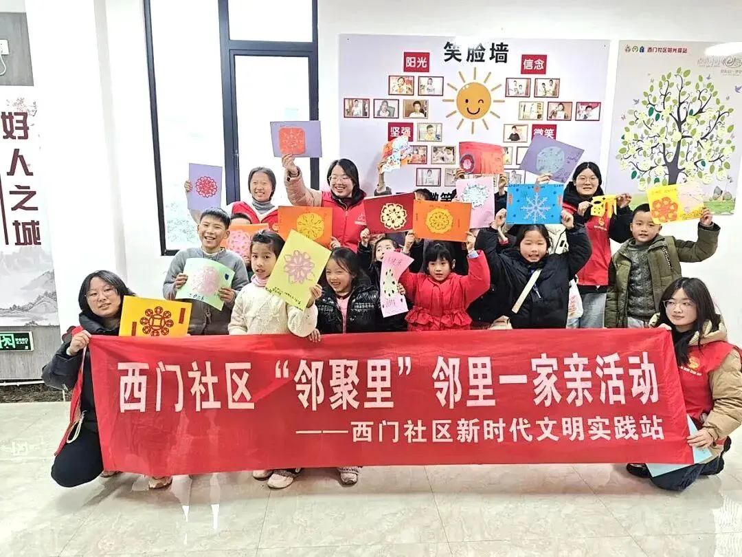 2月9日下午,龙津镇西门社区新时代文明实践站联合县青年志愿者协会举办“暖冬成长营”第四期“巧手剪窗花,欢喜迎新春”非遗剪纸主题活动。志愿者为孩子们讲解剪纸文化与技法,大家动手创作福字、窗花等作品,随后开展 “数字抱团” 互动游戏,现场气氛热烈。
