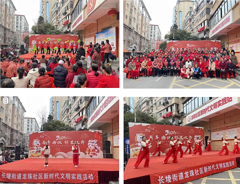 2月12日下午,长堎街道龙珠社区新时代文明实践站举办“我们的节日·春节”之2026年“马年腾跃 邻里欢舞”迎新春文艺汇演。200百余名居民欢聚一堂,在自编自演的节目中感受浓浓年味,共叙邻里情深。