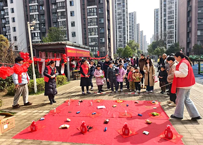 2月10日,南昌昌市新时代文明实践志愿服务促进会联合百花洲街道渊明北路社区新时代文明实践站开展“写春纳福玩趣游 平安暖邻过大年”我们的节日・春节主题活动,20 多位小朋友参与其中。志愿者向孩子们宣讲春节传统文化习俗,指导大家书写“福”字,并组织投壶、甩球、扭扭裤等趣味分组比赛,为获胜小朋友颁发小礼品,现场气氛欢乐活跃、其乐融融,在冬日里营造出浓浓年味与暖暖温情。