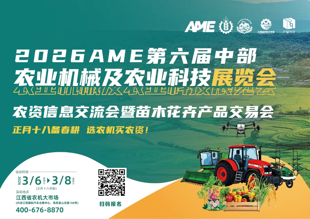 作为中部六省农机产业链的重要枢纽,江西凭借承东启西、连南接北的区位优势,正加速打造“南昌 - 吉安 - 赣州”智能农机产业带,主动联动湖北、湖南等邻省开展技术协同与资源互补,共同探索丘陵山区农业机械化的破局路径。为进一步推动中部地区农机现代化协同发展,共同破解“小地块、大产业”的丘陵困局。2026 AME第六届中部农业机械及农业科技展览会将于2026年3月6-8日(正月十八开展)在江西省农机大市场(内设江西国际汽车会展中心)举办,同期举办农资信息交流会暨苗木花卉产品交易会,着力打造集装备展示、技术交流、资源对接于一体的综合性平台。