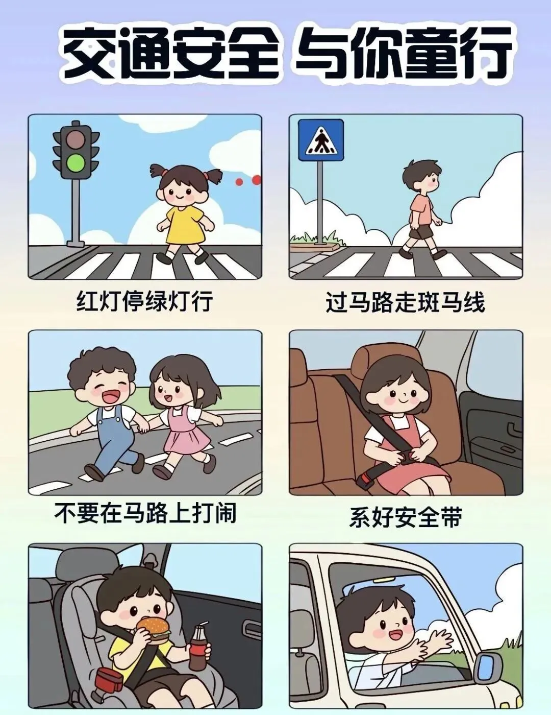 1.加强对孩子的交通安全教育,引导其树立“安全第一、生命至上”的出行理念。