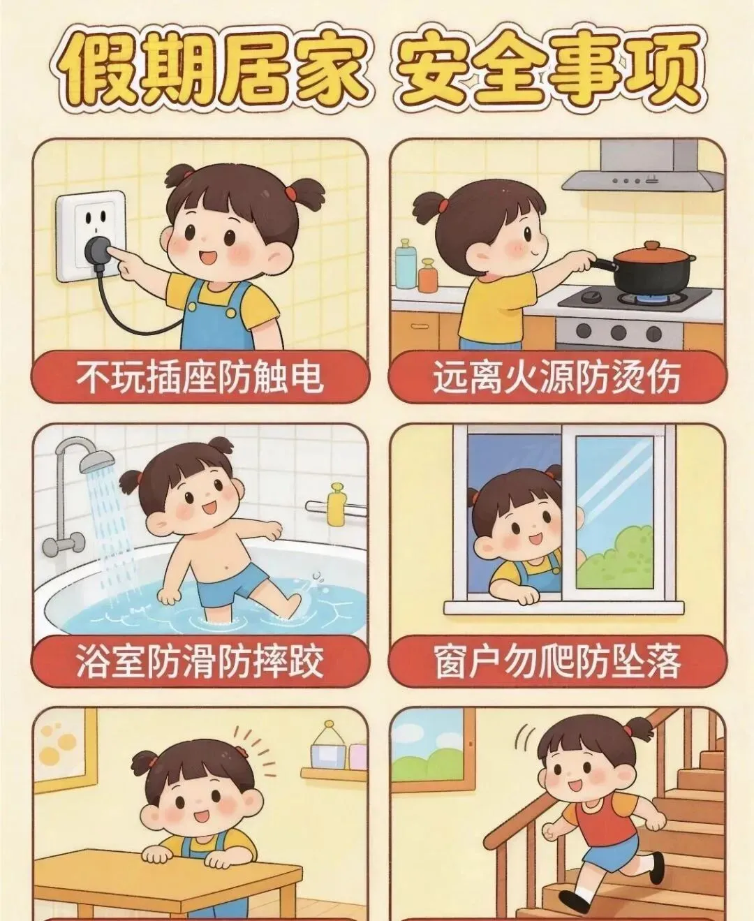 1.寒假期间孩子居家时间较长,需全面排查家中安全隐患,筑牢居家安全防线。