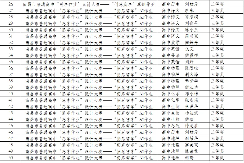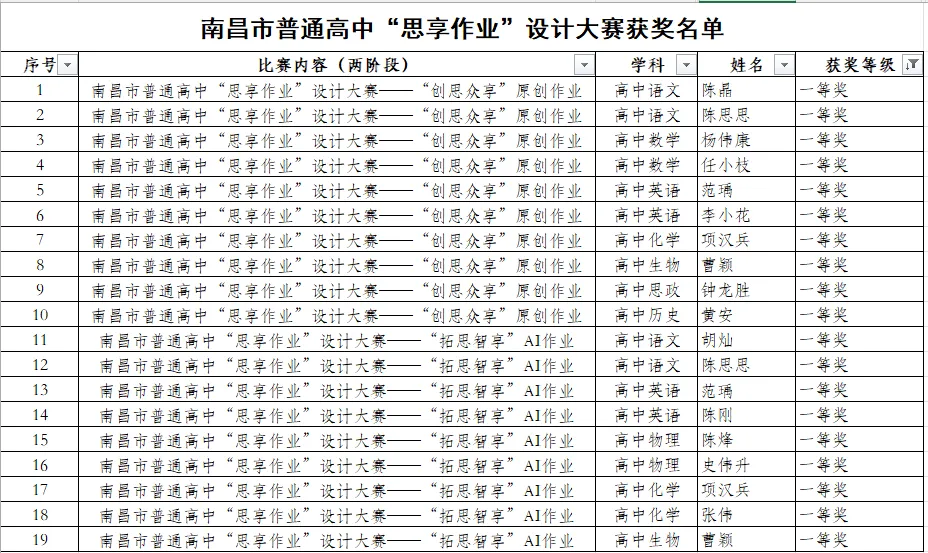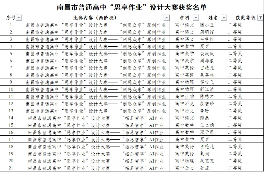 近日,南昌市2025年普通高中“思享作业”设计大赛评选结果揭晓。本次大赛中,我校教师共斩获一等奖15人、二等奖21人、三等奖50人,获奖数量与质量再创新高,充分展现了我校教师队伍过硬的教研水平与育人风采。