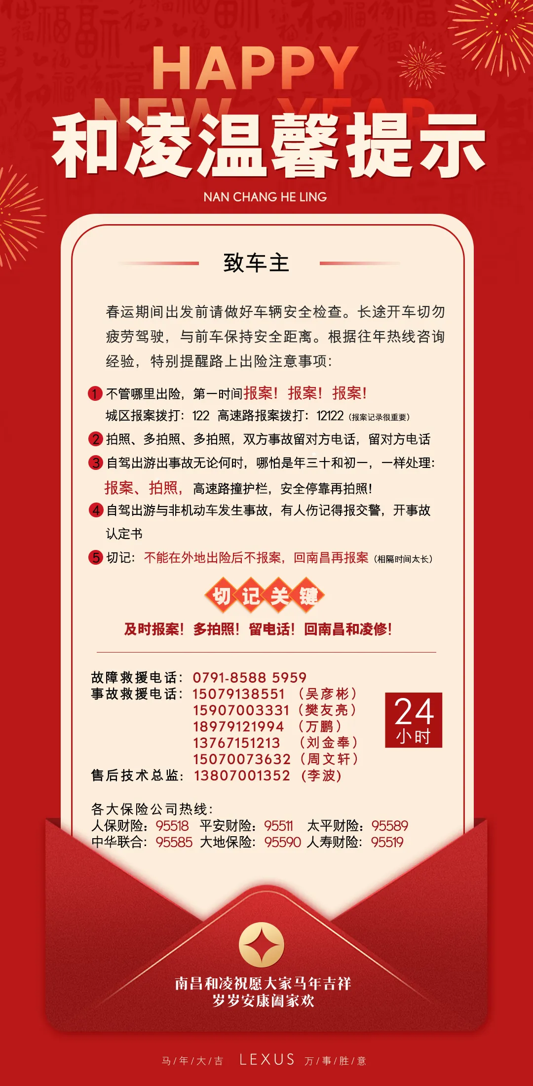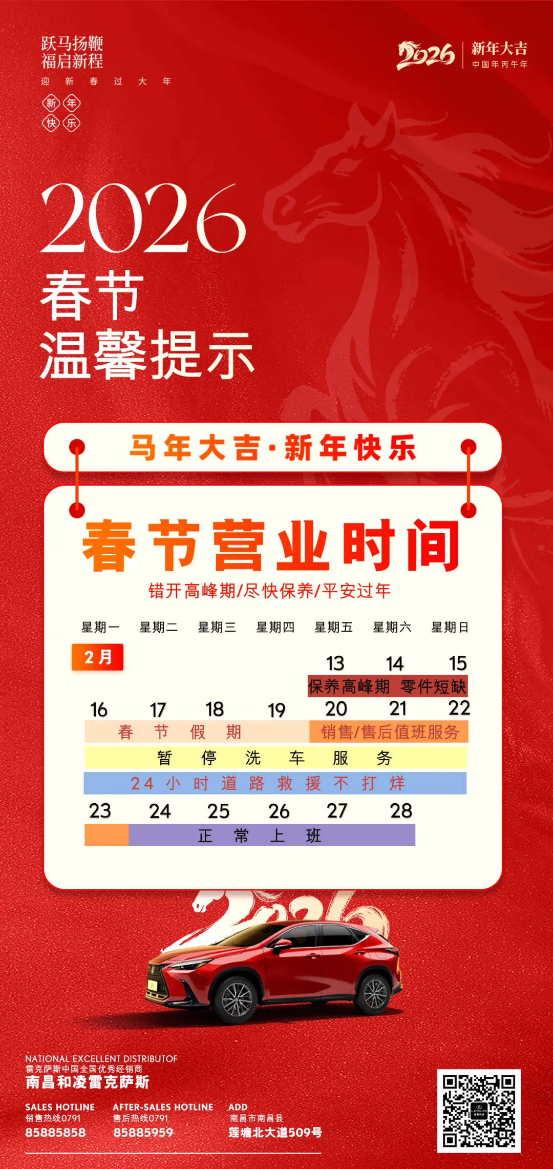 南昌和凌•温馨提醒 | 2026春节各项业务通知