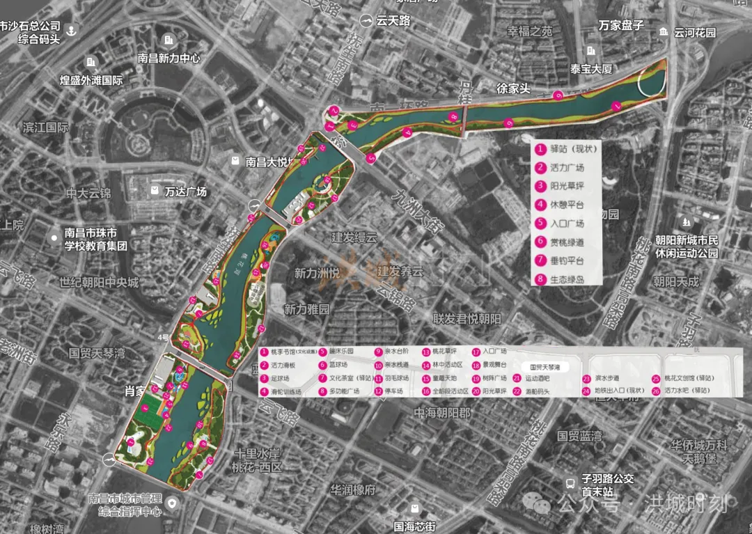 近日,从项目现场了解到,南桃花河水环境提升及生态修复项目(二期工程)已经基本完工。从实景图看,云锦路北侧区段河两岸土地肌理完成重整,同时增加了游步道和景观树等。从细节设计看,靠近翠菊路一侧设计有内凹式亲水平台,同时还打造了景观广场。靠近大悦城一侧,也同样打造有亲水平台和景观廊架,同时在地铁口区域还设置有机动车停车场。云锦路南侧靠近洲悦一侧,打造了大面积草坪广场,该节点还设计有自然过渡的坡道,同时还设置了景观用房。云飞路北侧靠近站前路学校节点处打造了集中式下沉广场,靠近马路一侧打造有路面停车场,该区域目前还在收尾施工。云飞路北侧靠近抚生路段设置有集中广场,同时还打造了廊架。云飞路南侧区域东段已经基本完工,西侧区域沿河滩涂施工完毕,景观广场和沉淀池等景观节点也在收尾施工。从现场进度看,目前项目已经基本完工,部分区域也已经开放,这也意味着南昌又将迎来一个大型水系公园。从区位看,该项目位于西湖区朝阳新城南桃花河,北起桃花南路,南至云海路;西临抚生路,东以翠菊路为界。