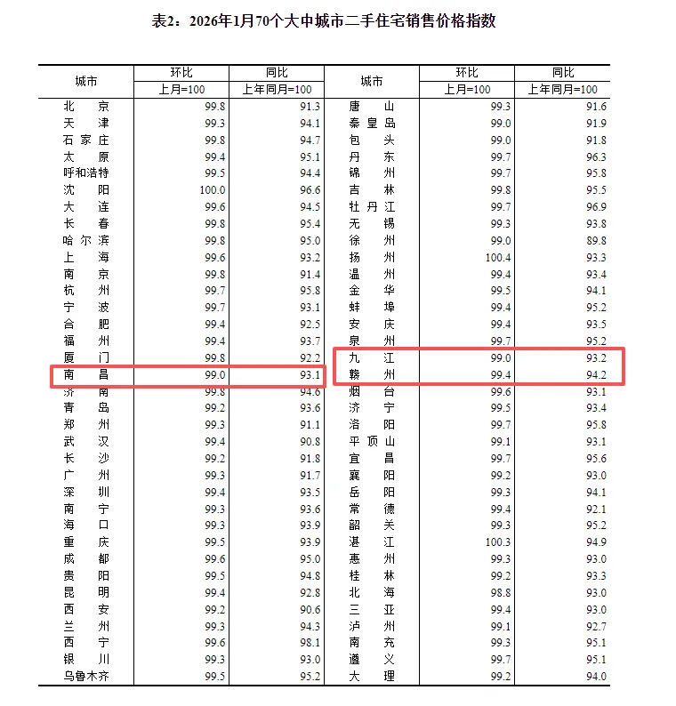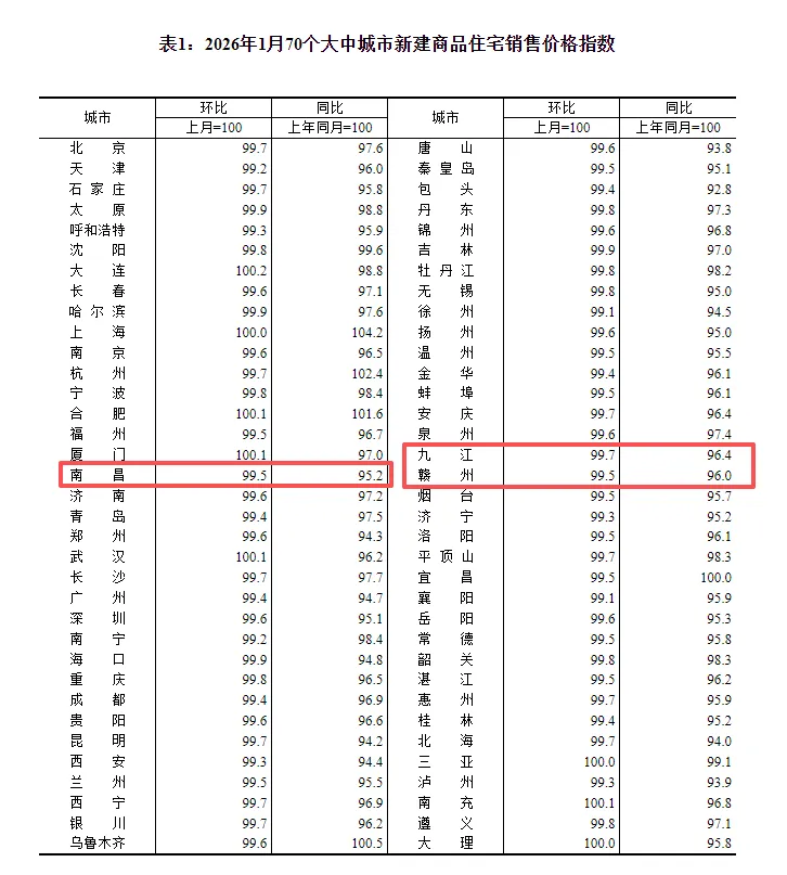 2月13日,国家统计局公布今年1月份全国70个大中城市商品住宅销售价格变动情况。江西三地新房销售价格涨跌不一。