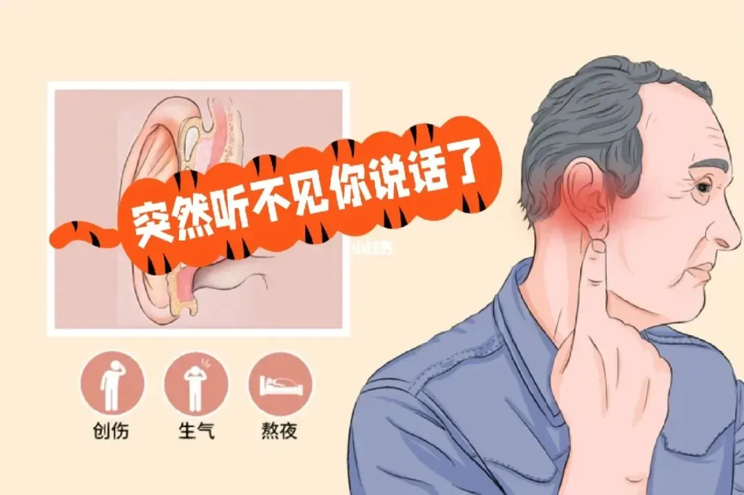 这是春节期间耳鼻喉科高发急症,特指72小时内突然发生的、原因不明的感音神经性听力损失,多表现为单侧听力下降,常伴随耳鸣、耳闷胀感,部分患者还会出现眩晕、恶心呕吐。春节期间,精神紧张、熬夜劳累、烟酒过量、情绪波动等,都可能诱发突发性耳聋。