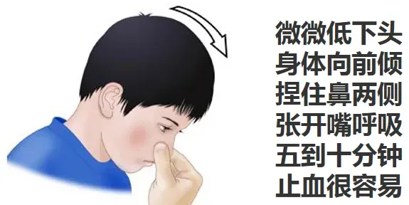 1.不要紧张,不管是哪一侧出血,应赶紧身体前倾、低头,用拇指和食指捏住双侧鼻翼。